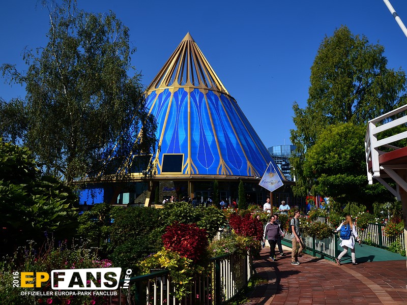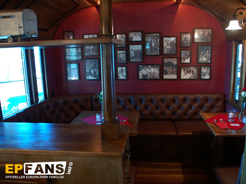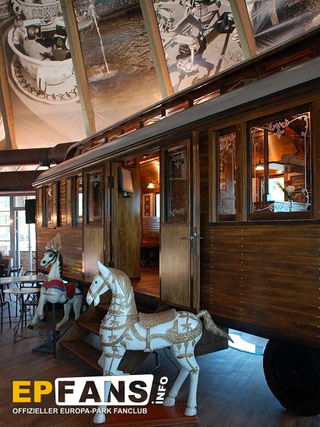 | Thematisierung: | Darstellung der Historie von Mack Rides und des Europa-ParkKombination von Tradition und ModerneSchaustellerwagen als Café-Bar |