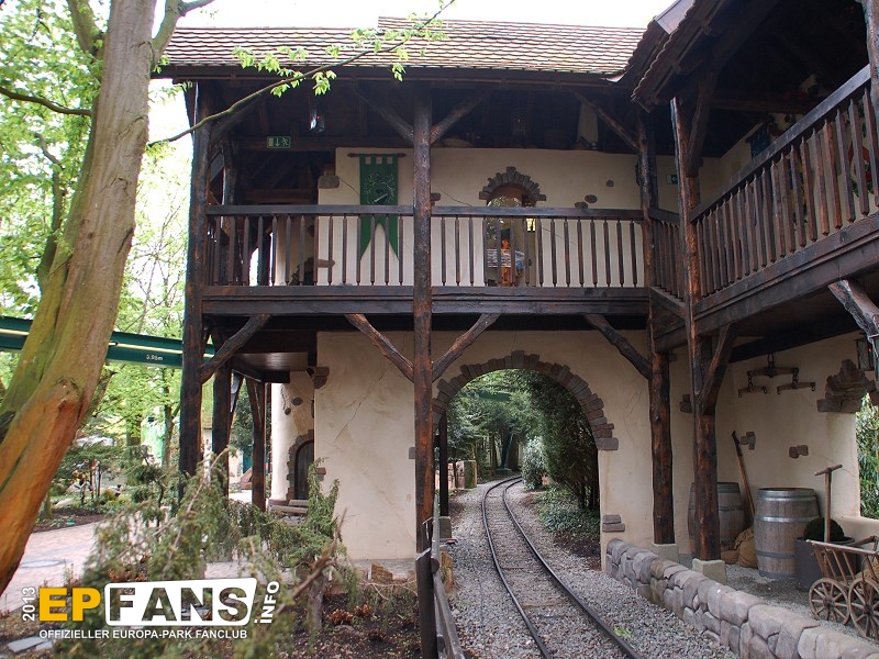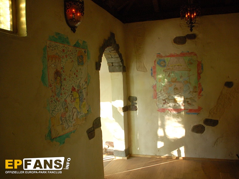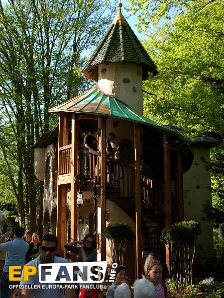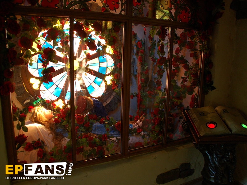 - In einem Märchenwald darf das Dornröschen-Schloss natürlich nicht fehlen. In der oberen Etage kniet der Prinz vor dem schlafenden Dornröschen. Durch die unteren Etage fährt die Panoramabahn.