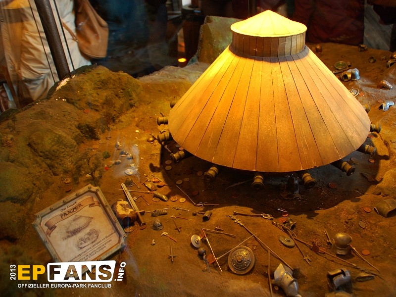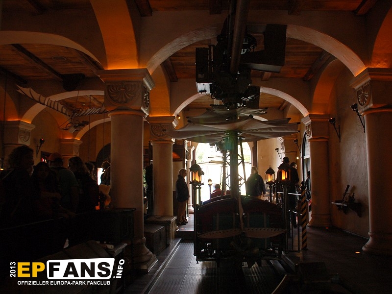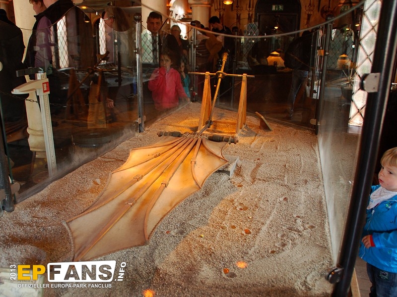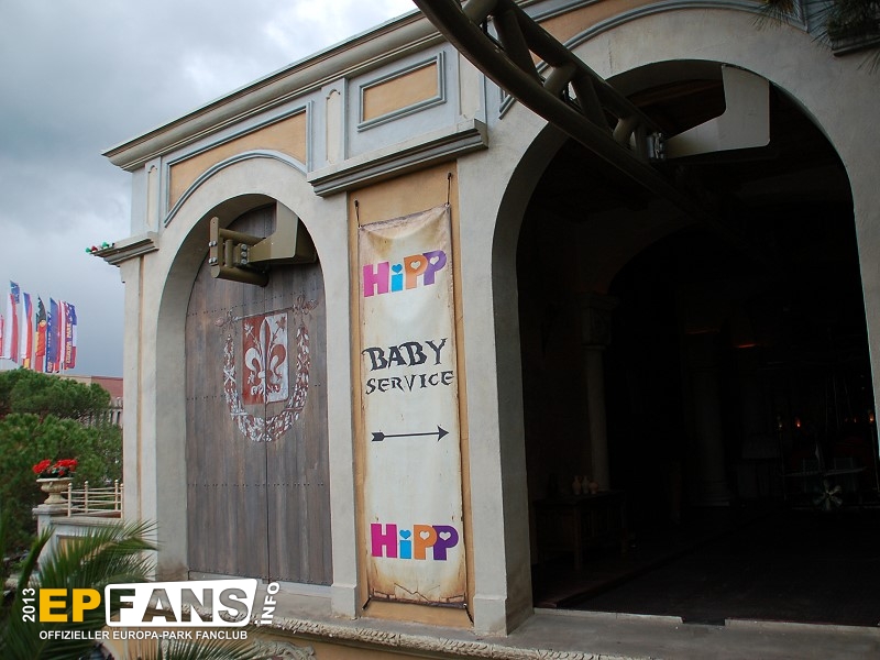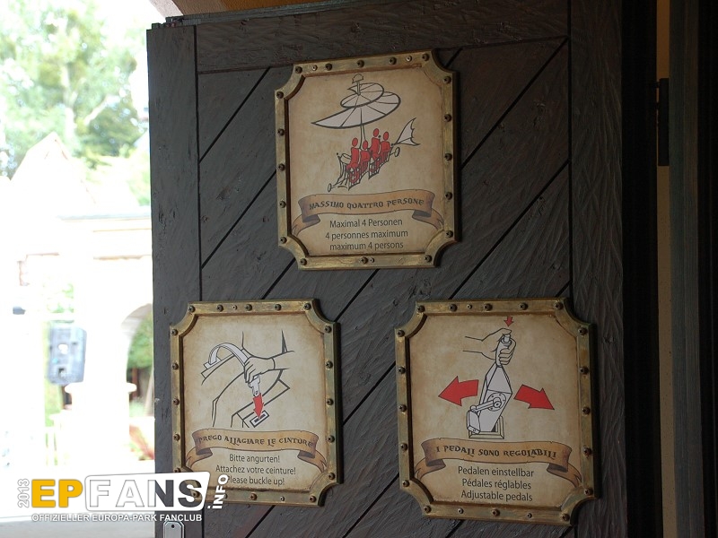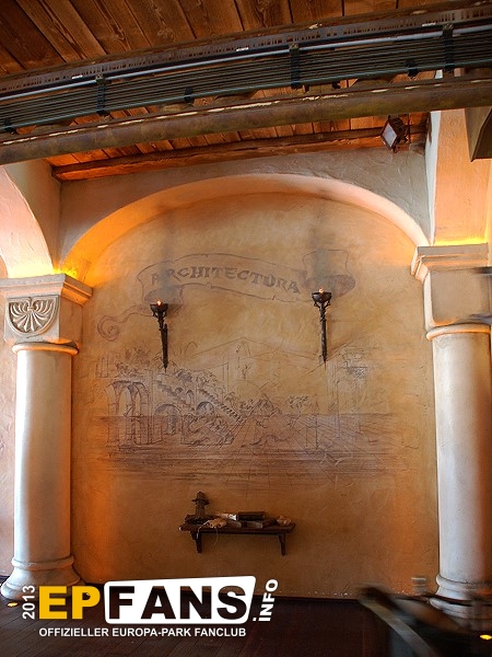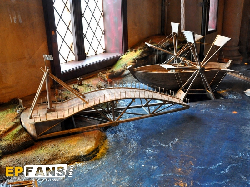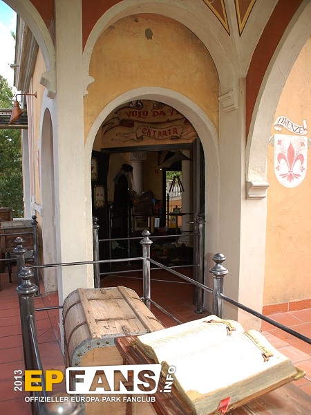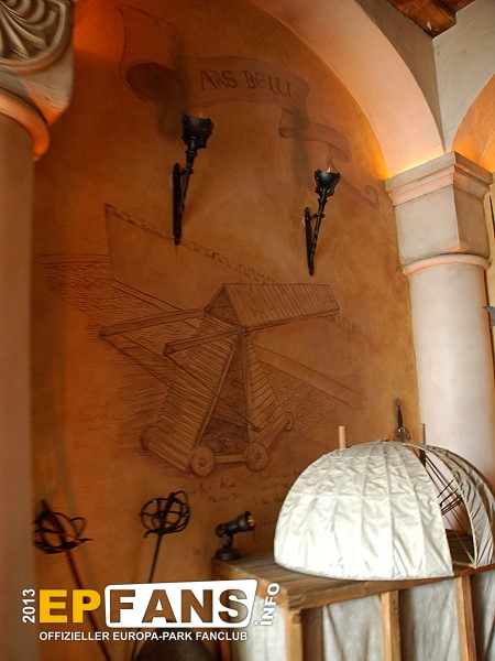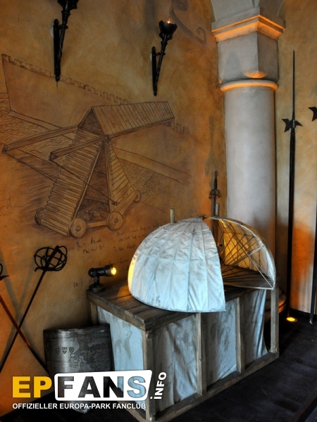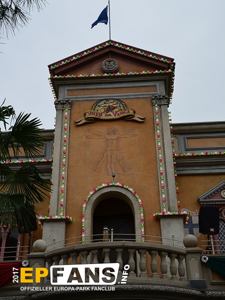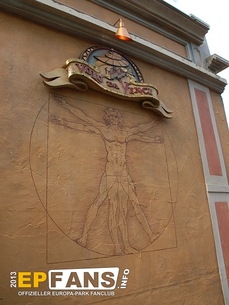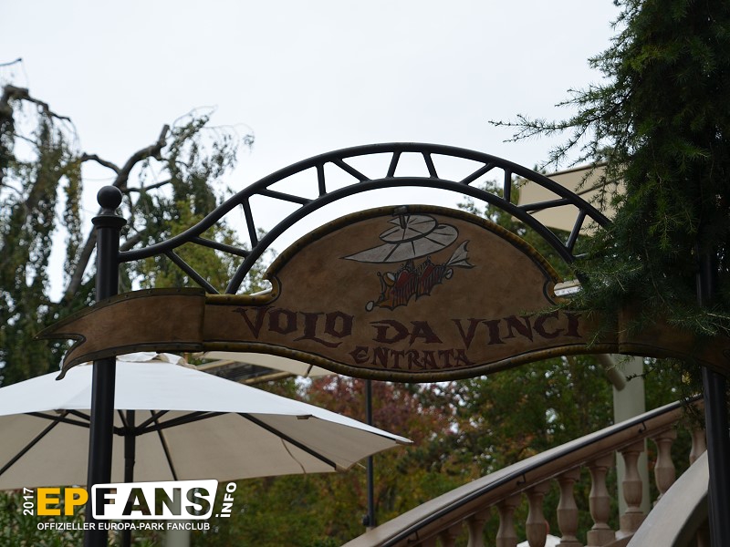 |  |  | Volo da VinciItalien - Im Gebäude der ehemaligen Mack Rides-Ausstellung wurde im Juli 2011 die neue Attraktion "Volo Da Vinci" eröffnet. Die Mitreisenden können von dort aus in kleinen Gondeln über den italienischen bzw. deutschen Themenbereich schweben. Die Gondeln sind als Flugmaschinen gestaltet, der Bahnhofsbereich ist als Atelier des großen italienischen Erfinders im 15. Jahrhundert - Leonardo Da Vinci - angelegt.