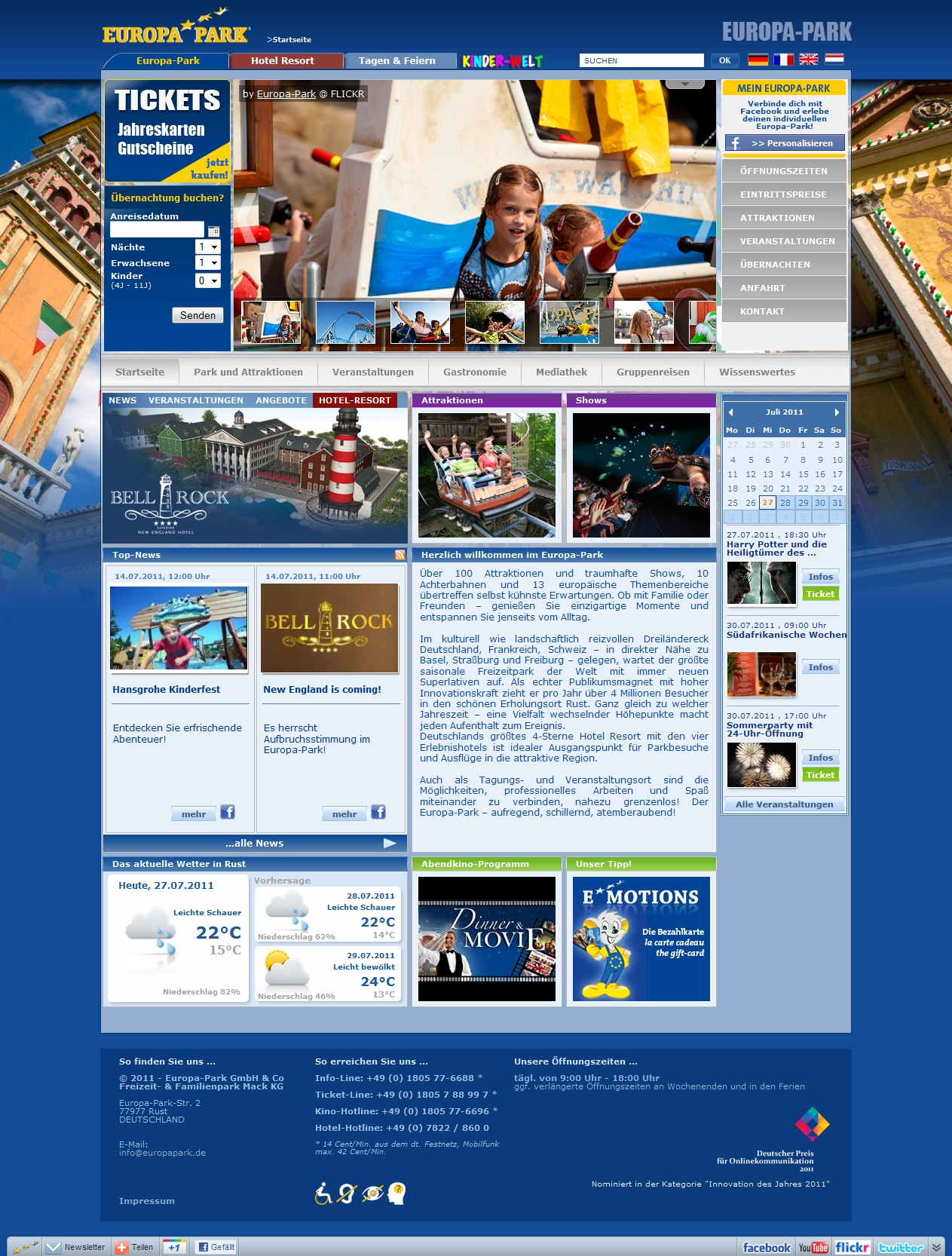 Carmen: 29.07.2011 - 11:49 Nominierung zur Innovation des Jahres? Vielleicht sind das die neuen Internetseiten; der neue Zeitgeist. Eine Seite zu schaffen, die einer Billig-Flug-Suchmaschine oder einer Reiseveranstalter-Seite an Unübersichtlichkeit und unzureichender Struktur in nichts nachsteht und genauso dem Benutzer das ?Schnäppchen-Gefühl? suggerieren möchte. Es kommt natürlich darauf an, was für ein Ziel man verfolgt, wen man als Kunden ansprechen möchte. Mir fehlt jedenfalls das Gefühl, das der Europa-Park bei jeder (Medien)Präsenz bisher vermittelt hat. Das sollte auf der neuen Internetseite nicht verloren gehen. Die ?heile Welt? fängt nicht erst im Park an. Das ist doch einer der Gründe, warum dieser Park so anders ist, als Andere: Magie. Illusion. Und vor allem Herz.