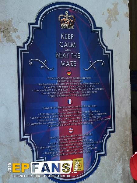 Laser Adventure - Schule der AbenteurerEngland - Seit der Sommersaison 2020 können hier die Nachwuchstalente des mysteriösen Bundes „Adventure Club of Europe” sich auf die Suche nach einem geheimnisvollen Buch voller Codes begeben. Das Buch befindet sich im düsteren Keller der Londoner „Adventure Club of Europe“ Akademie.Der Keller ist mit einem Geflecht von Laserstrahlen gesichert. Schon beim geringsten Kontakt mit dem Laser wird ein Alarm ausgelöst. Hilf den jungen Entdeckern Belle, Connor, Oni und Oli und überwinde den Laserstrahl Parcours ohne einen Strahl zu berühren. Bis zur Wintersasiosn 2019/2020 musste hier mit viel Geschick der richtige Weg innerhalb kurzer Zeit durch die geheimen Lagerräume eines Museums gefunden werden, um wie der damalige Name "Queen`s Diamonds" bereits verriet, die Diamanten der Queen zu stehlen.