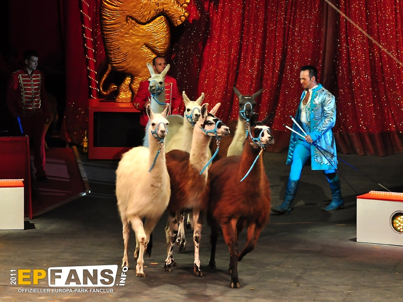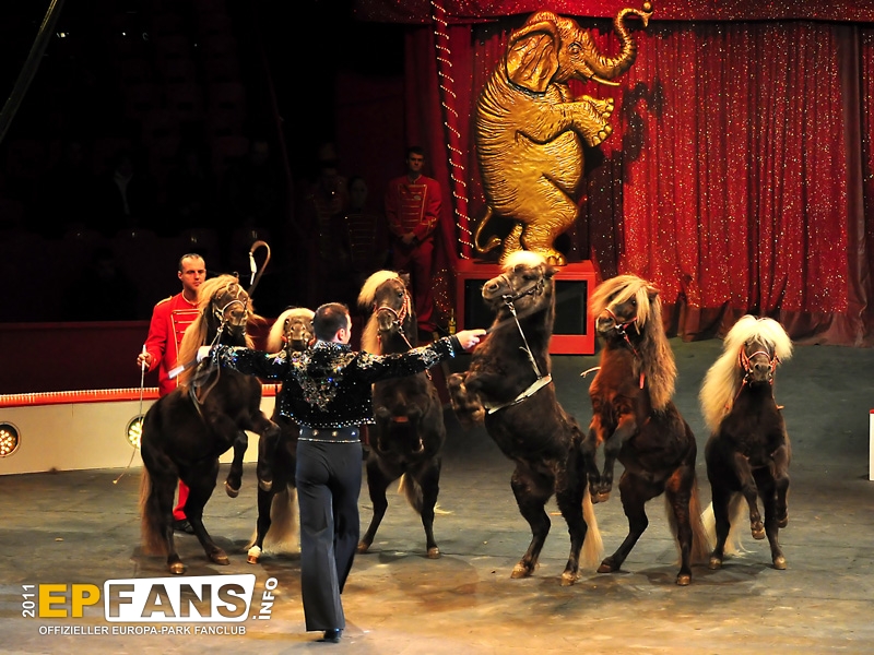| Bitte beachten: Bild- und Tonaufnahmen durch die Zuschauer sind im Winterzirkus nicht erlaubt! Wir danken dem Europa-Park für die freundliche Gestattung der Aufnahmen und deren Veröffentlichung auf unserer Seite. |