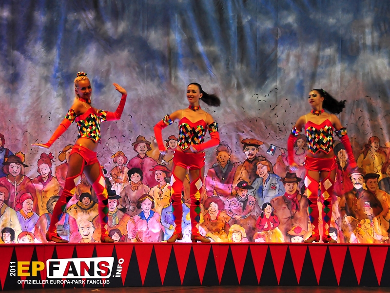 | Das Europa-Park-Showballett präsentiert sich mit einer tollen Choreografie und farbenfrohen Kostümen - passend zur Zirkusmanege. |