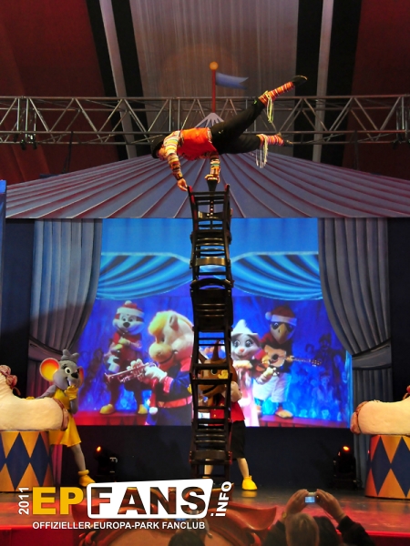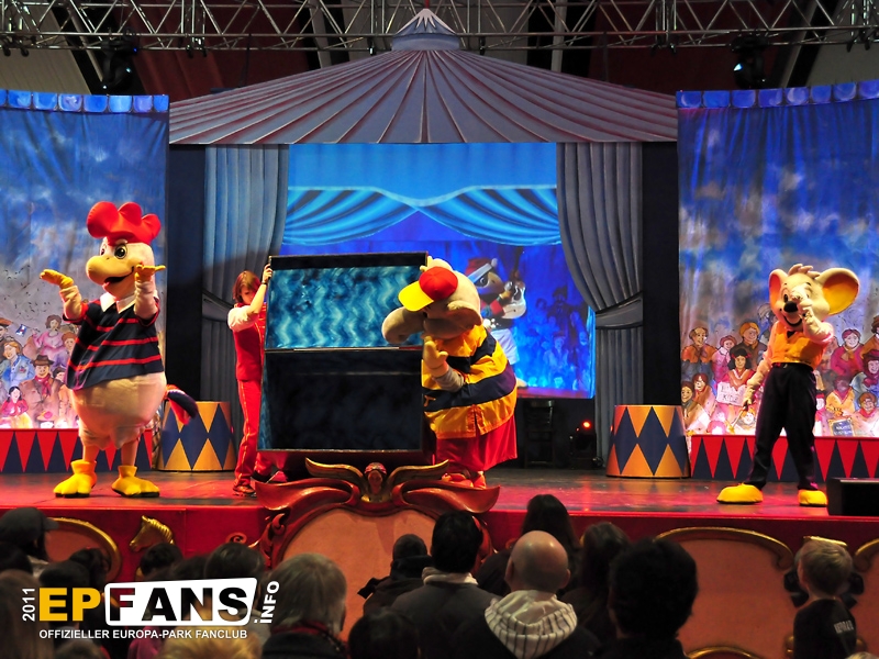 |  |  | Weihnachten in der Manege - Euromaus-Show Winter 2011/2012Die Euromaus und ihre Freunde Mausi, Eurofant, Louis und das Böckli befinden sich in einem Zirkus. Dort treffen sie auf Pferde, Clowns und Artisten.
