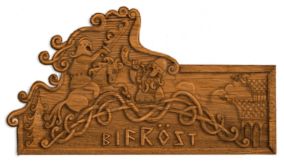 In einem der Häuser zaubern zwei Angestellte dabei mit Stechbeitel und Hammer wahre Kunstwerke aus Holz. Wer ihnen in diesen Tagen einen Besuch abstattet, könnte unter Umständen so manche Besonderheit entdecken: Aktuell wird dort nämlich an zwei gro?en Wappen für die neue Holzachterbahn gearbeitet. Zu finden sind darauf auch zwei, mit Island und der nordischen Mythologie im Bezug stehende, Name nämlich Bifröst und Yggdrasil.