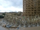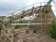 Aus den Gondeln des Riesenrades lässt sich ein guter ?berblick auf die derzeitigen Aktivitäten auf der Holzachterbahnbaustelle gewinnen. So wurde zum Beispiel bei der Unterquerung des Atlantica Super Splash eine Unterkonstruktion für eine ?berdachung der Fahrstrecke angebracht.