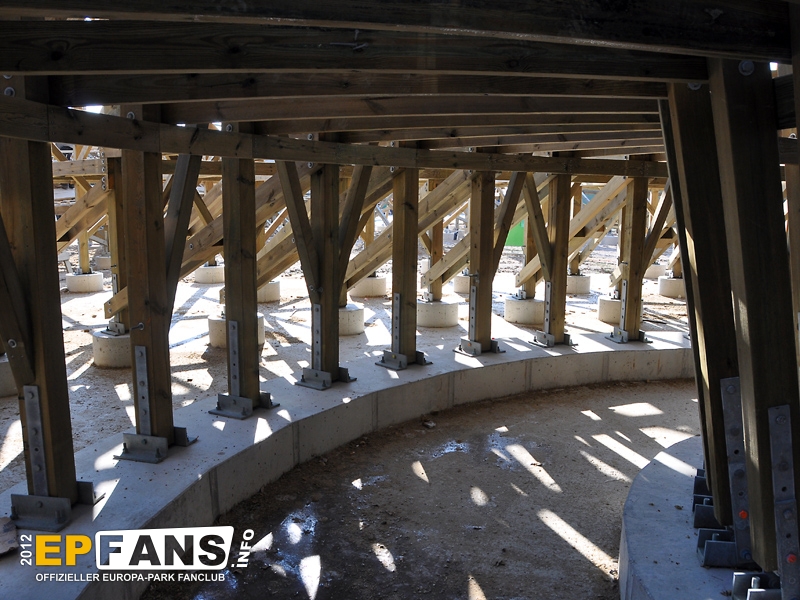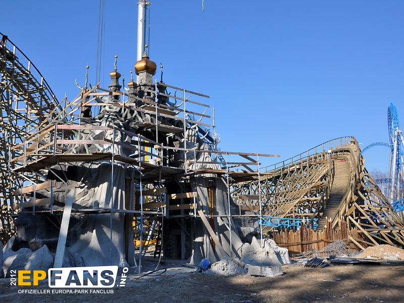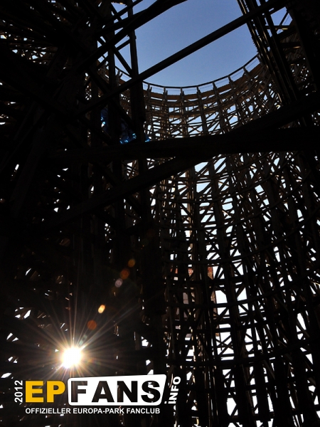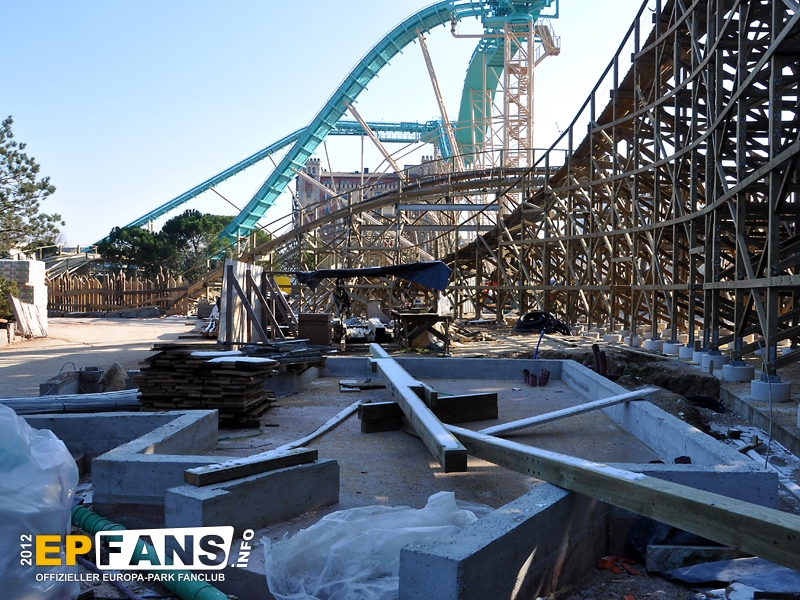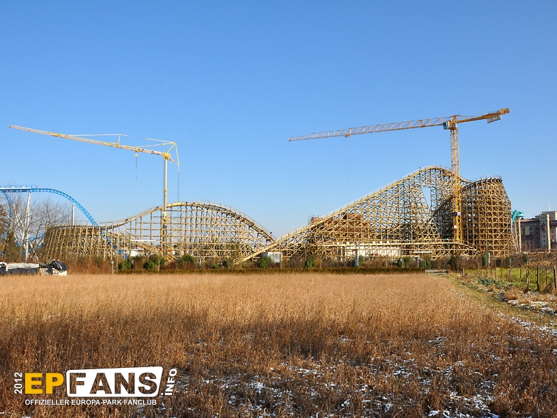 Es vergeht kaum ein Tag, an dem nicht irgend ein interessierter Fan oder zukünftiger Hotelgast um die Gro?baustellen von Wodan oder BellRock im badischen Rust herumläuft, um zu schauen, wie weit der Baufortschritt ist. Auch wir waren schon oft genug an den Zäunen und Baustellentoren, um einige Neuigkeiten zu entdecken. Die Teilnehmer des Winter-Fantreffens im Dezember 2011 konnten den Rohbau der Wodan-Holzkonstruktion zumindest schon einmal aus der Nähe sehen und sich die Einzelheiten bei einer interessanten Führung näher bringen lassen. In weniger als einem Jahr Bauzeit entsteht hier eine gigantische Holzachterbahn im isländischen Themenbereich, die sich sogar bis in den portugiesischen Länderteil hinein schlängelt. Bereits von au?erhalb des Parks beeindruckt die neue Skyline: