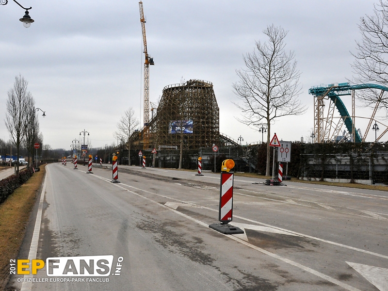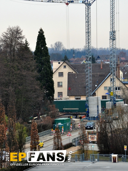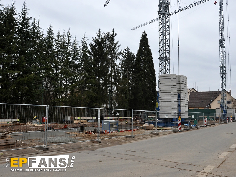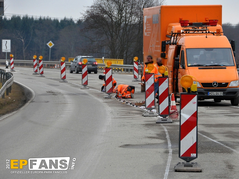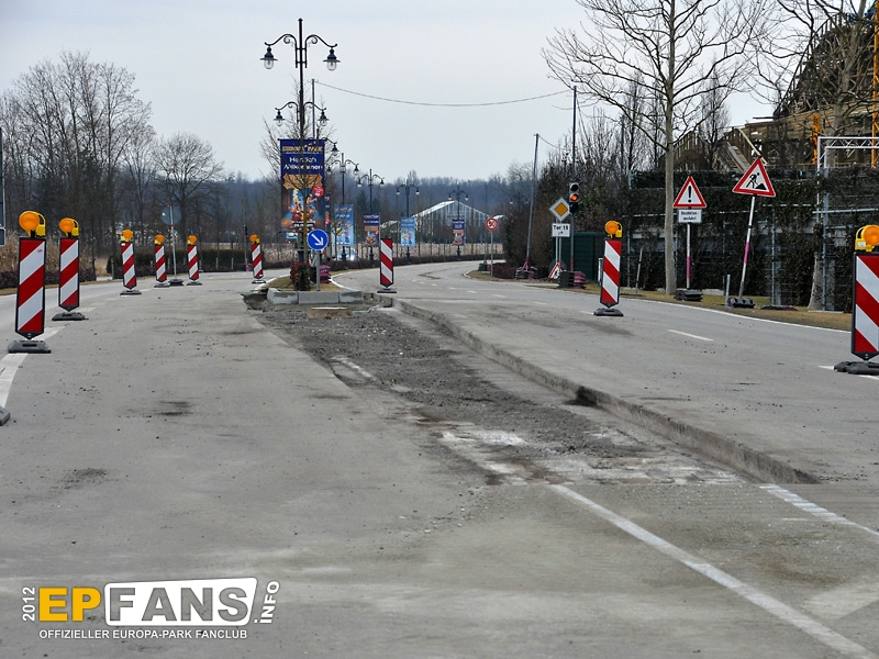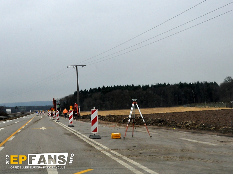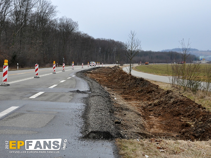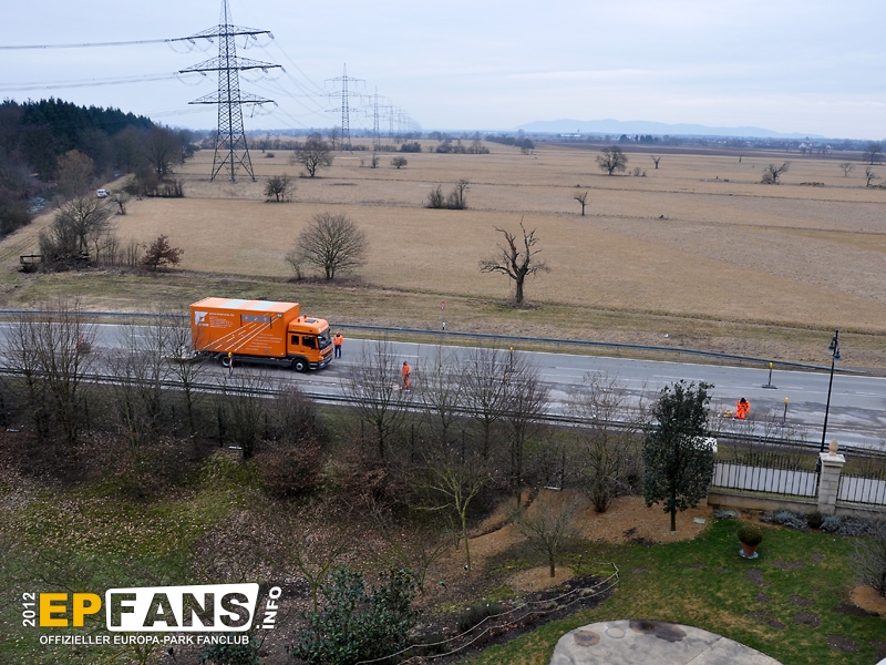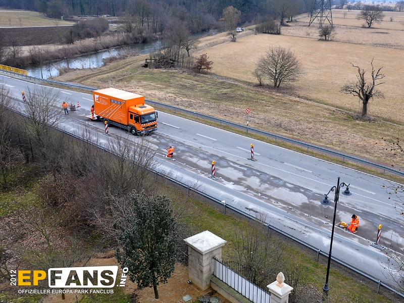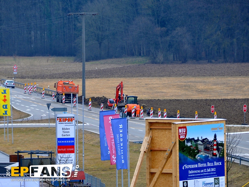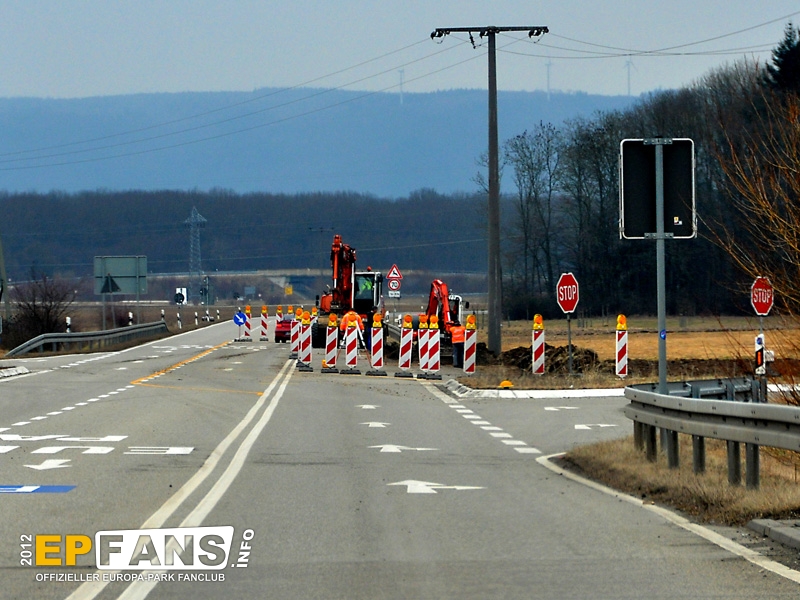 Die wenigsten Parkbesucher werden zukünftig das neue Gebäude zwischen dem österreichischen Themenbereich und der Gemeinde Rust wahrnehmen. Hier errichtet der Europa-Park für seine Mitarbeiter ein neues, sogenanntes Personalwohnhaus. Die ersten Fundamente hierfür wurden in den vergangenen Tagen gegossen. Egal ob neue Mitarbeiter oder einer der über 4 Millionen Parkbesucher pro Jahr, alle müssen irgendwie auch zum Europa-Park hin gelangen. Aus diesem Grund wird in der aktuellen Winterpause die dreispurige Zufahrtsstra?e zur Autobahn A5 mit modernsten Mitteln umgerüstet, um zukünftig die Belegung der drei Fahrspuren individuell regeln zu können: Morgens zwei von drei Fahrspuren in Richtung Park, abends zwei von drei Fahrspuren in Richtung Autobahn. Hierfür sind sogenannte Schilderbrücken und Wechsellichtzeichen erforderlich. Die ersten Arbeiten dafür haben nun begonnen. Hierzu nochmals ein Artikel aus der Badischen Zeitung zur Ankündigung des Projekts: