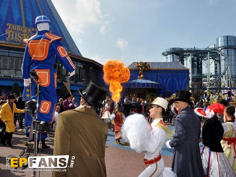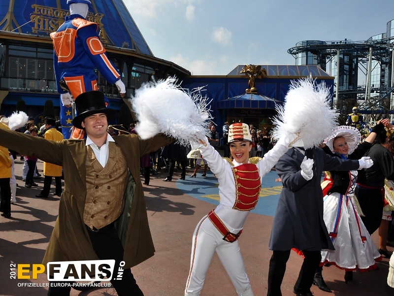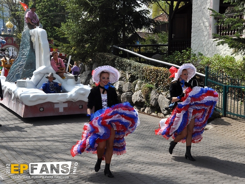 |  |  |  | Frühlingsparade 2012Die Frühlingsparade 2012:Die Parade 2012 ist stark an das Thema Neuengland angepasst. Entsprechende Kostüme und ein Paradenanhänger als Leuchtturm weisen auf das Hotel Bell Rock hin, das in diesem Stil im Juli 2012 eröffnet wird. Au?erdem legt die Parade auch in diesem Jahr wieder einen "Zwischenstop" vor dem Historama ein um dort einige Minuten lang einige Kunststücke (Jonglieren, Akrobatik, Feuerspucken,...) zu präsentieren.