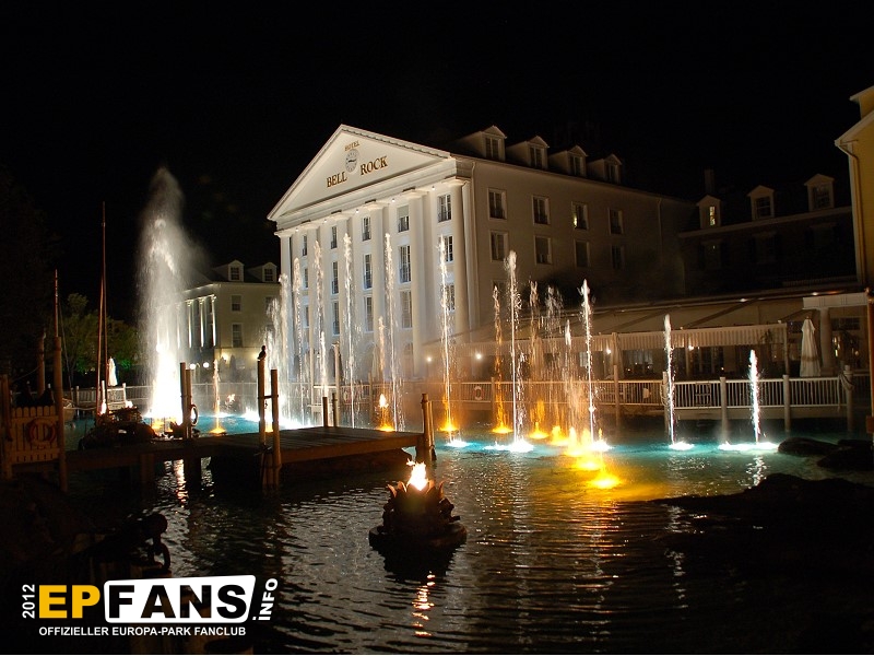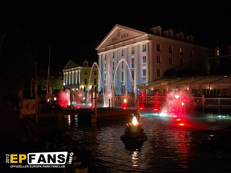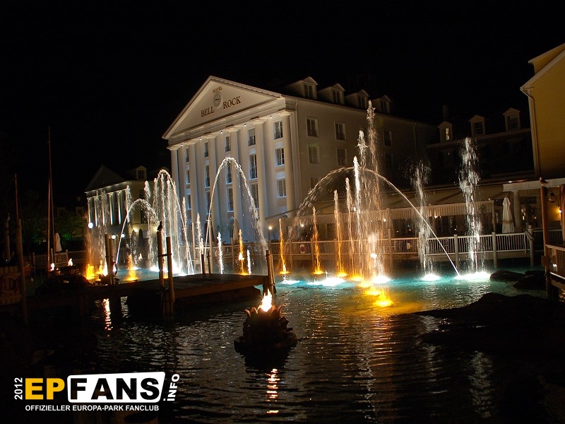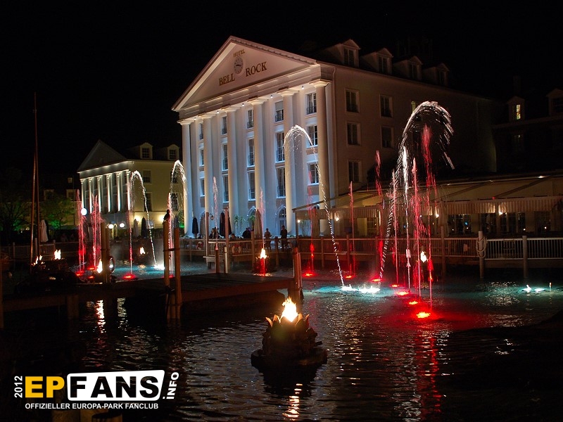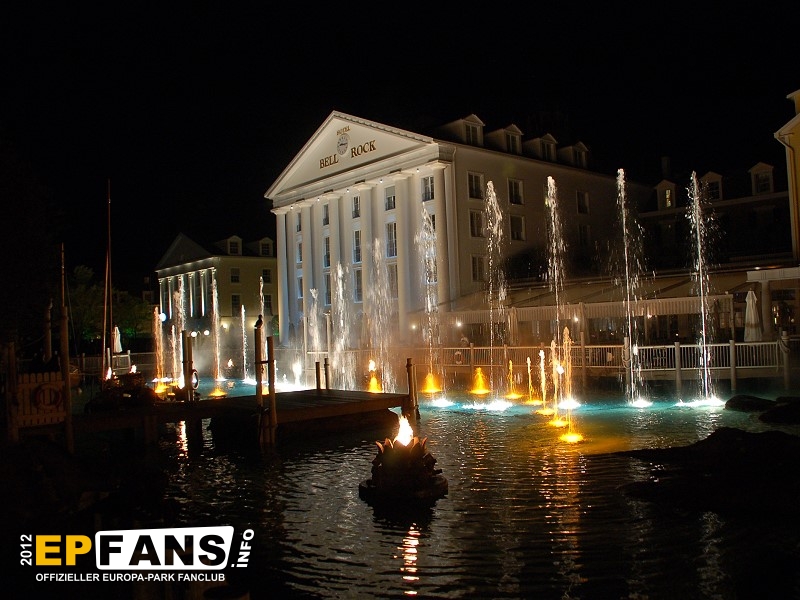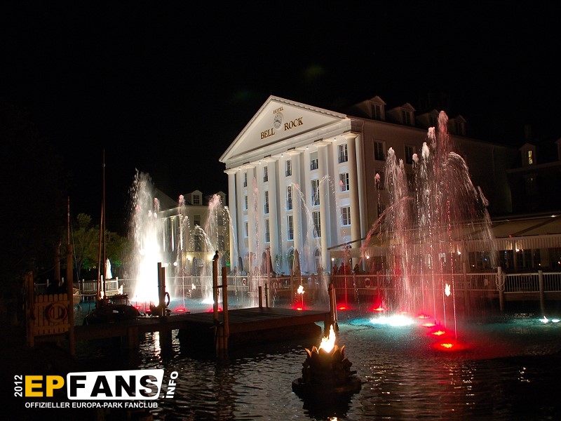 Die Wasserfontänen-Show "Rhode Island Waterfire" findet mehrmals täglich statt und hat eine Dauer von ca. 10 Minuten. Nebel- und Lichteffekte sorgen mit Musikuntermalung für ein Stimmungsvolles Bild im See vor dem Hotel Bell Rock.