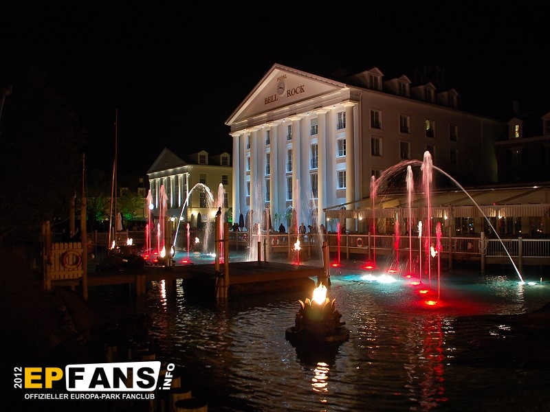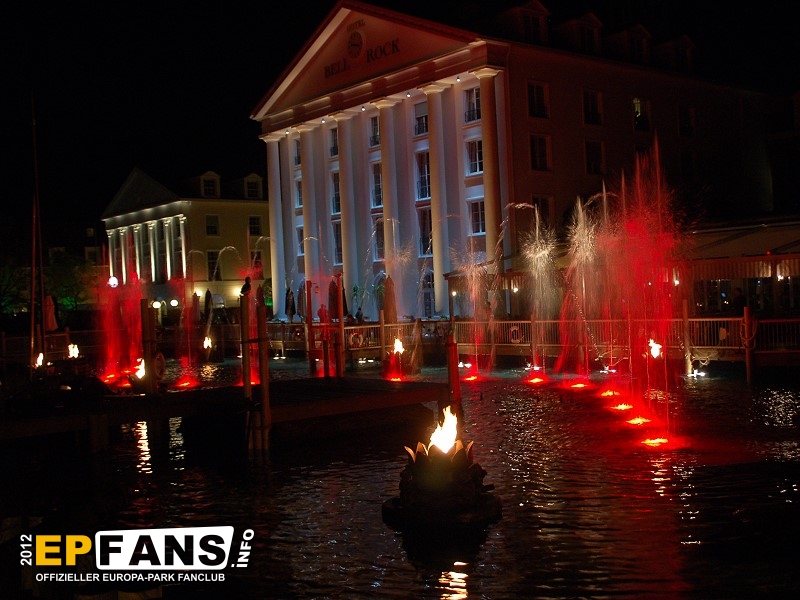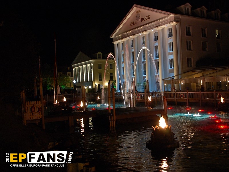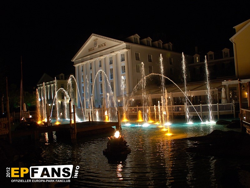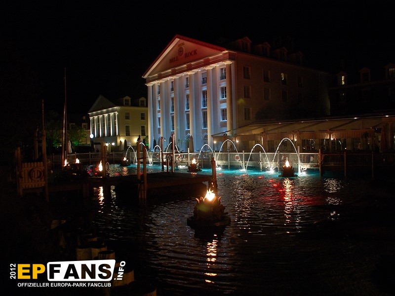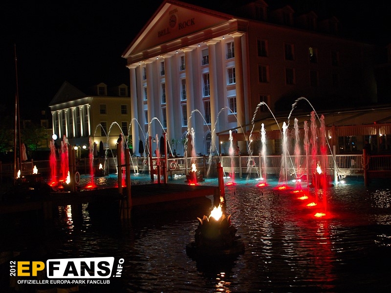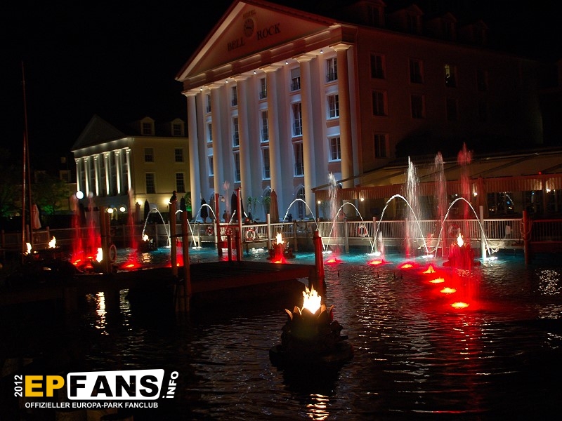 Die Wasserfontänen-Show "Rhode Island Waterfire" findet mehrmals täglich statt und hat eine Dauer von ca. 10 Minuten. Nebel- und Lichteffekte sorgen mit Musikuntermalung für ein Stimmungsvolles Bild im See vor dem Hotel Bell Rock.