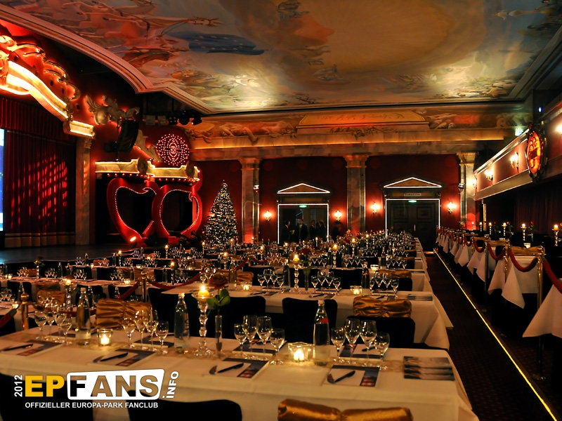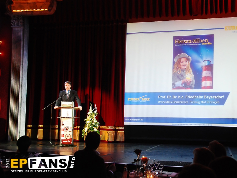 Das Werk beinhaltet einige Fakten zum sozialen Engagement des Europa-Park sowie zahlreiche Artikel, Berichte, Fotos und Hintergrundinformationen zu den Aktionen und Veranstaltungen mit karitativen Wurzeln. Wir können diese dicke Broschüre bzw. dieses kleine Büchlein (wie immer man es auch nennen will) nur wärmstens empfehlen, um einen Einblick zu erhalten über die Bedeutung des Parks jenseits von Achterbahn und Zuckerwatte. In diesem Zusammenhang richtete auch Herr Prof. Dr. Dr. h.c. Friedhelm Beyersdorf vom Universitäts-Herzzentrum Freiburg/Bad Krozingen als Kooperationspartner des Europa-Park im sozialen Bereich noch einige Worte an das Publikum, bevor (wie oben schon erwähnt) ein weiteres Show-Highlight vorgestellt wurde. Ein Auszug aus der abendlichen Dinnershow "G`lamour" machte Appetit auf einen vollständigen Besuch dieser Veranstaltung, welche bis Anfang Februar als Einzelpersonen oder auch als Guppenveranstaltung gebucht werden kann. (Weitere Informationen unter www.europapark.com/dinnershow") Wir danken dem Europa-Park, dass wir bei dieser Präsentation dabei sein durften und wünschen allen erwarteten 500.000 Park- und Resort-Besuchern eine schöne Zeit im "Winterwunderland Europa-Park". Wir verzichten an dieser Stelle auf die Nennung der gesamten Einzelheiten zur diesjährigen Wintersaison in Bezug auf Anzahl der Weihnachtsbäume, Lichterketten etc. Hier lediglich noch die Neuheiten, bzw. Besonderheiten 2012/2013: