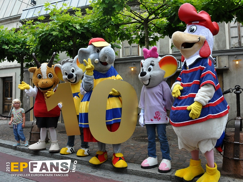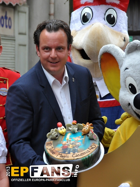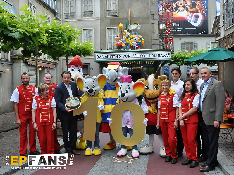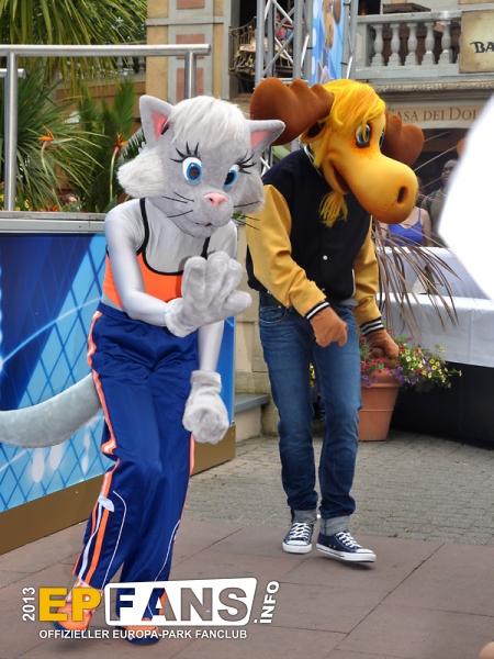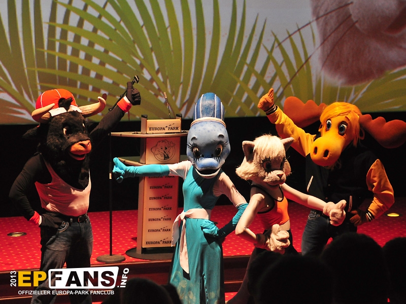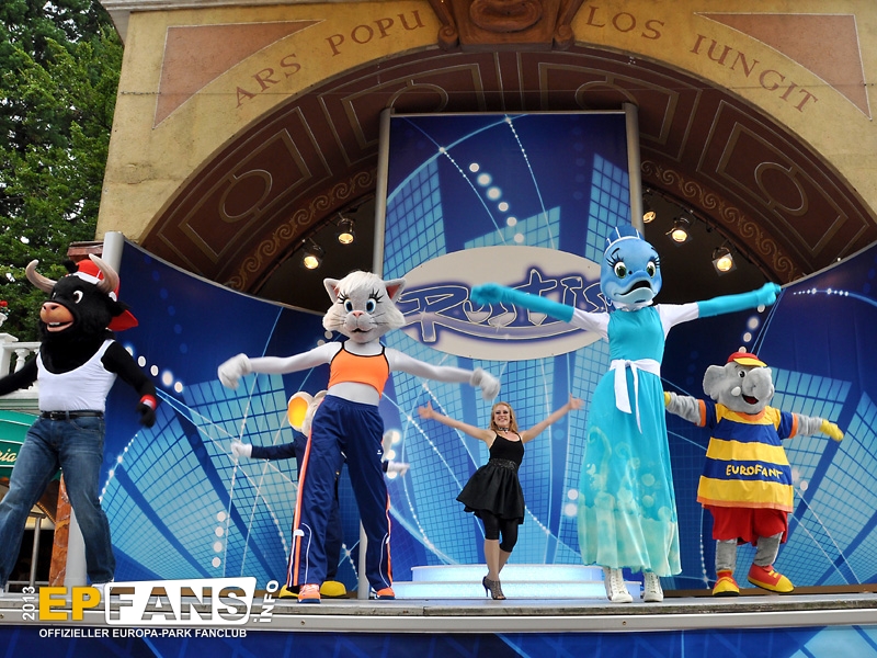 Heute wurde dem Magic Cinema schließlich zum Geburtstag gratuliert. Standesgemäß natürlich mit einer Geburtstagstorte der fünf aktuellen Hauptdarsteller. Und als Geschenk, insbesondere für die zahlreichen Kinobesucher wurde jetzt auch endlich eine eigene Toilettenanlage im Gebäude selbst eröffnet. Natürlich stilecht im "Kino-Look"! Weiterhin durfte der Kinossal heute Schauplatz sein für die Pressekonferenz und "Album-Release-Party" der neuen Musikband "Die Rustis": ![]() Die Rustis, das sind die vier Maskottchen Helena, Antje, Carlos und Erik der jeweiligen Themenbereiche im Europa.-Park (Griechenland, Holland, Spanien und Skandinavien). Der Europa-Park, genauer gesagt Mack Media haben in Kooperation mit Starwatch Entertainment (für die Musik) und Ambient Entertainment (für die Visualisierung) die Musikband "Die Rustis" erschaffen. Nachdem die vier charmanten und aus dem EP bekannten Tiercharactere bereits 2012 einen Gastauftritt im Musikvideo von Marquess hatten, haben diese nun ein eigenes Album herausgebraucht, welches heute vorgestellt wurde. Für ihre erste Single-Auskopplung "Salut!" wurde bereits ein Musikvideo produziert:
