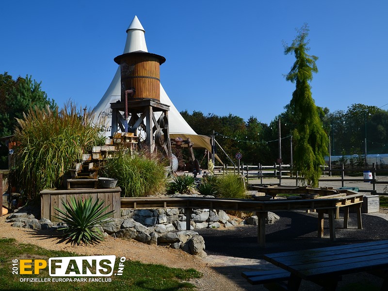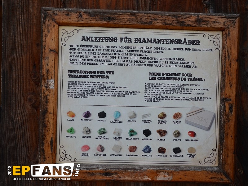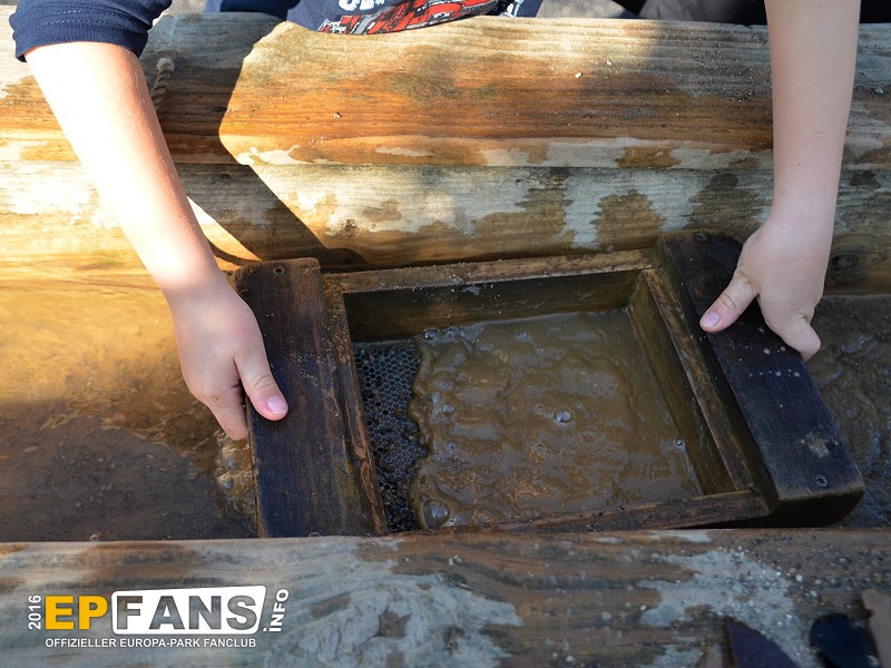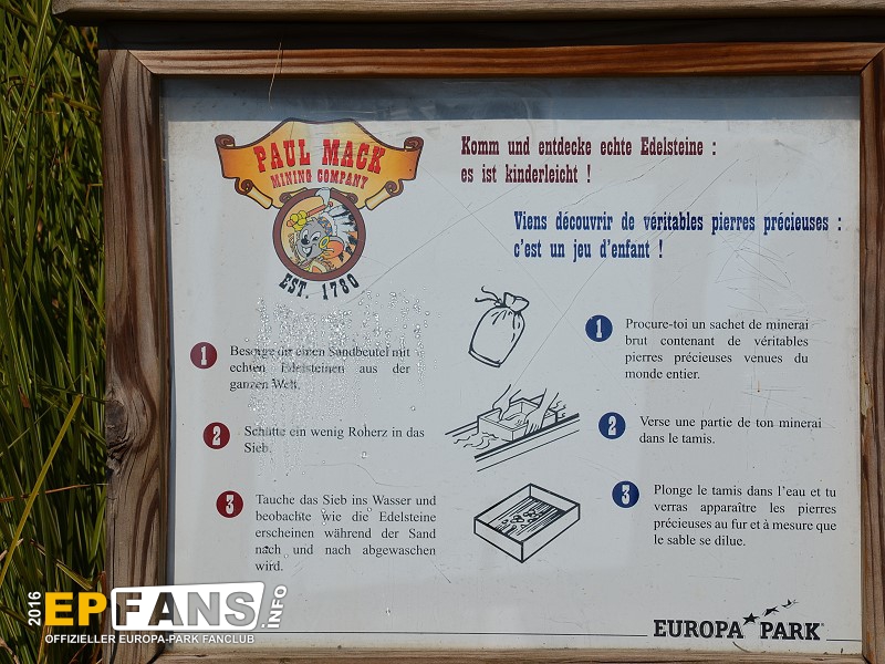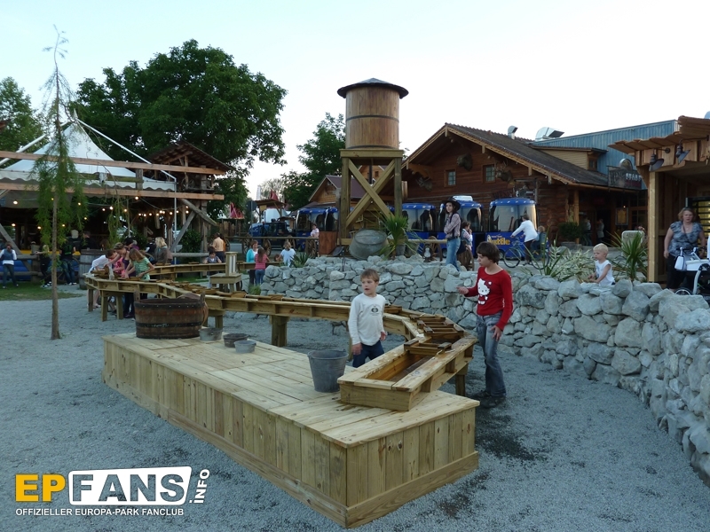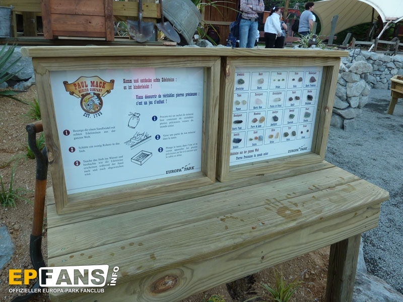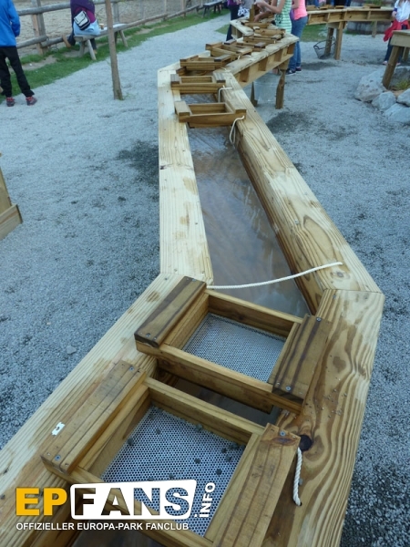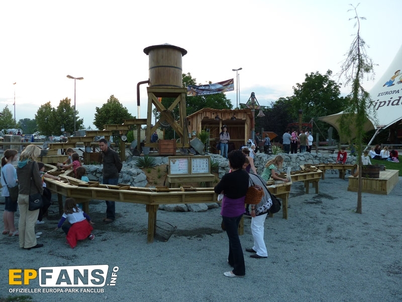 EdelsteinwaschanlageFür Kinder wurde im Sommer 2010 diese Attraktion im Camp Resort des Europa-Park erstellt. Neugierige Forscher können hier auf Schatzsuche gehen und konnten in einer Art "Goldwaschanlage" anfangs aus einer Sandpackung Edelsteine herauswaschen.