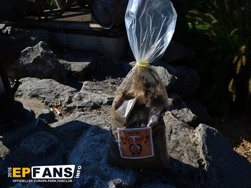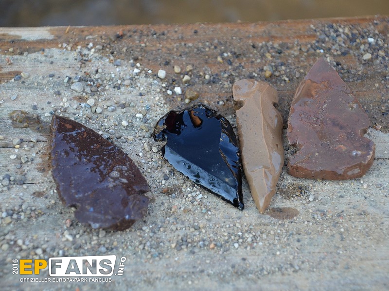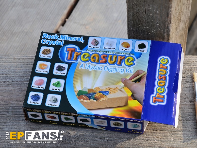Die Sandpackungen konnten zu jeder Tages- und Nachtzeit aus einem Automaten für ein paar Euro gekauft werden. Durch geschicktes Auswaschen mit Sieben am künstlichen Wasserlauf kamen in den ersten Jahren aus dem Sand echte Edelsteine zum Vorschein. Danach wurde auf Pfeilspitzen umgestellt. Jetzt erhält man an der Rezeption einen Gipsblock in dem sich die Steine befinden.