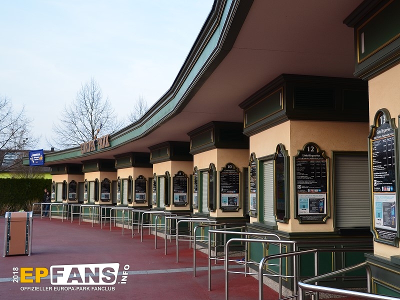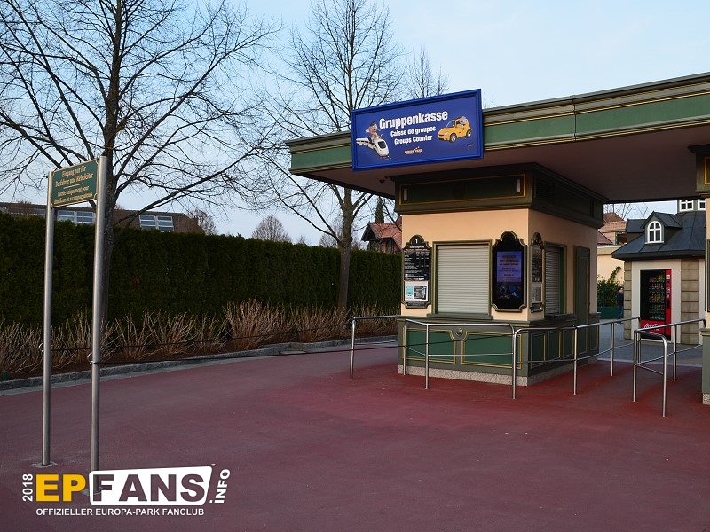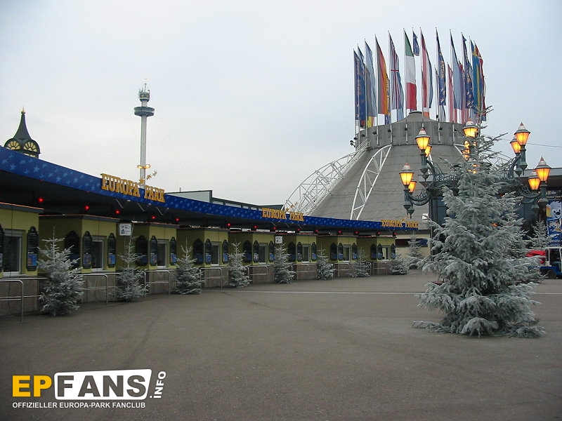 Es begann alles mit einem kleinen überschaubaren Eingang. Die Kassenhäuschen waren anfangs noch nicht thematisiert und erstrahlten weiß. Er befand sich einige Meter hinter dem heutigen Ende der Deutschen Allee.