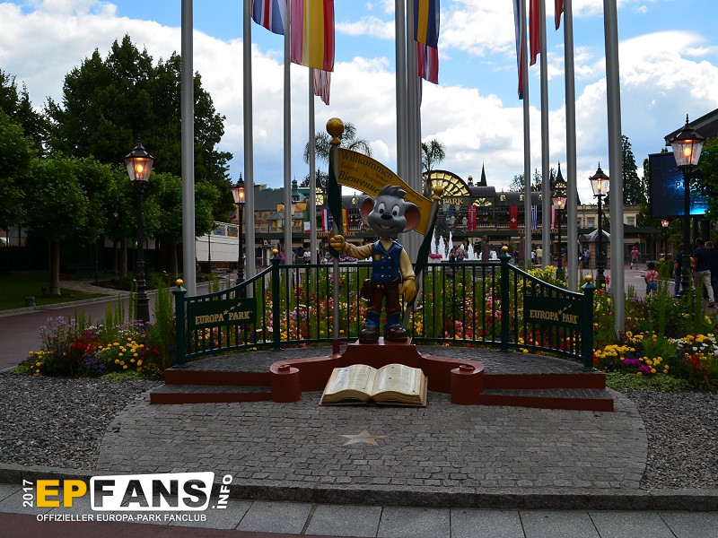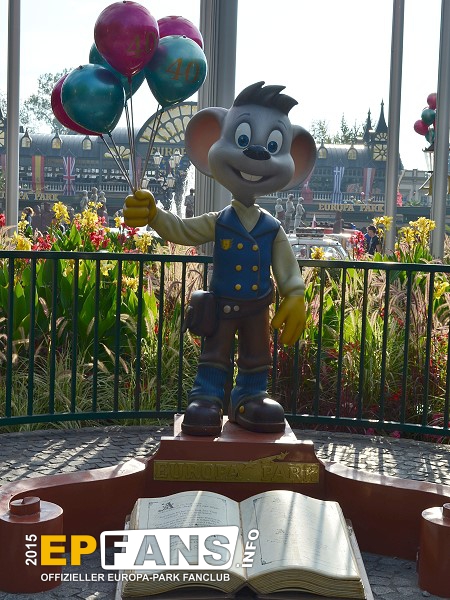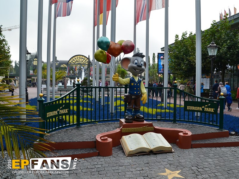Die Euromaus, die alle Parkgäste, die vom Hauptparkplatz kommen, begrüsst, hat auch schon mehrfach ihr Gesicht geändert. Anfangs stand dort eine Blumeneuromaus. Diese wurde zur Wintersaison 2009/2010 durch eine Kunststoffeuromaus ersetzt. Dies war die blau gekleidete Version mit dem Hut in der Hand. Im August 2015 erfolgte der nächste Wechsel der Figur. Da wurde die Euroamus mit den Luftballons in der Hand aufgestellt. Die Lufballons sind jedoch mittlerweile verschwunden.