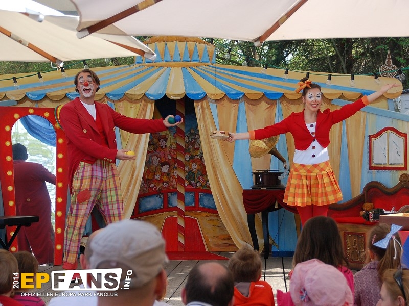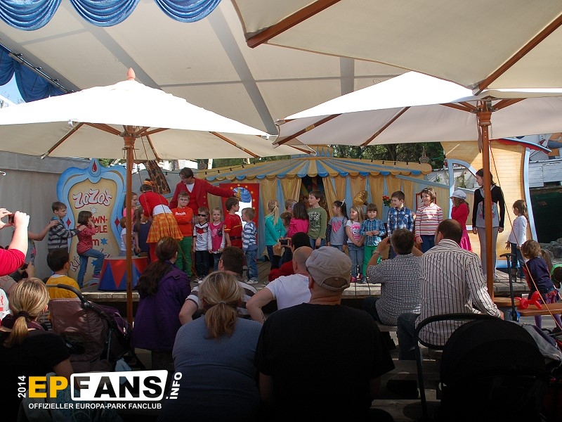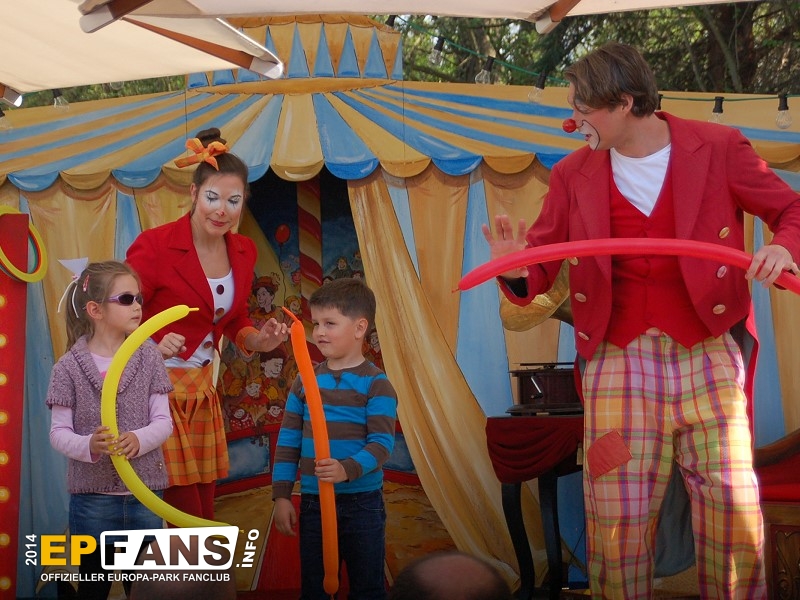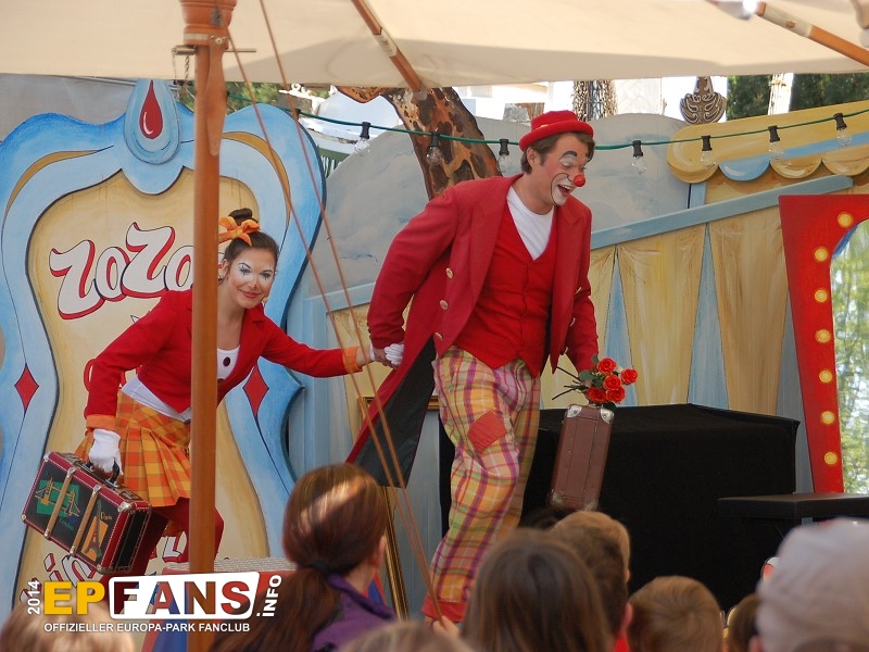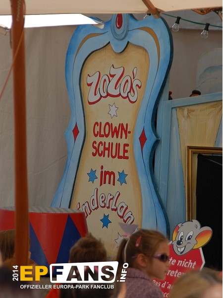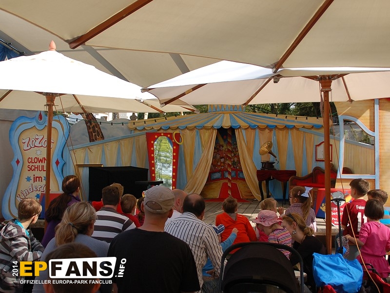 ZoZo’s Clownschule - Sommer 2014Auf der kleinen Bühne in der "Welt der Kinder" präsentiert der Park wieder eine Mitmach-Show für die kleinen Parkgäste.Der Clown ZoZo zeigt den Kindern sein können und lädt sie in seiner 20minütigen Show auch mal auf seine Bühne ein, um zum Beispiel Luftballonfiguren selber zu machen.