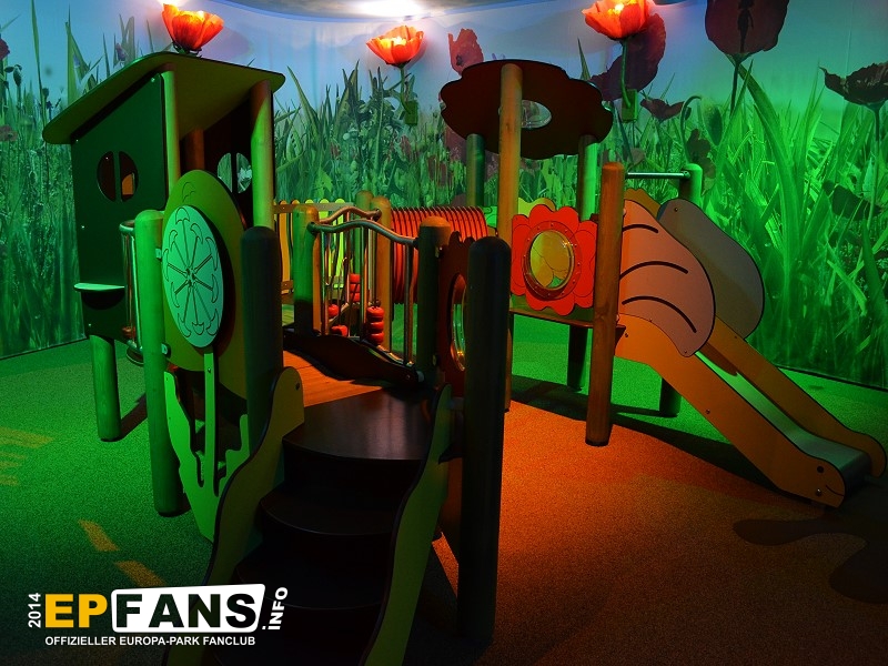 Königreich der Minimoys - Die Spielecke ist nur für Kinder bis 12 Jahren. Krabbeln, rutschen, wackeln für jeden Geschmack bietet die Spielecke etwas. Kleine Bildschirme zum Zeichnen sind ebenfalls vorhanden. Die Spielecke ist mit einem Tor und einem hohen Zaun verschlossen. Kinder unter 4 Jahren sind jedoch zu beaufsichtigen. Der Hersteller der Spielgeräte ist eibe.