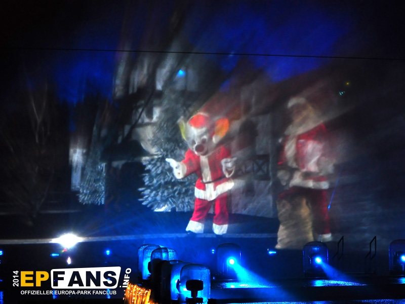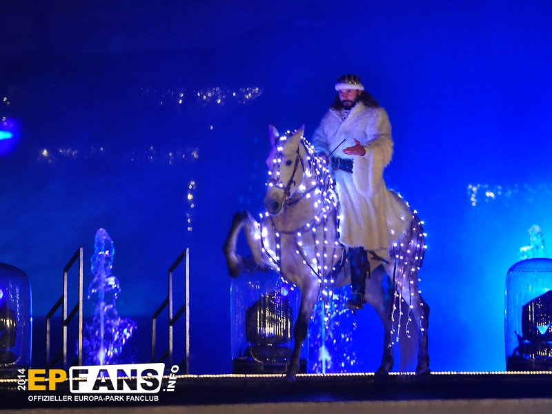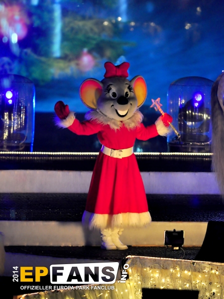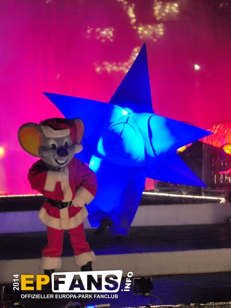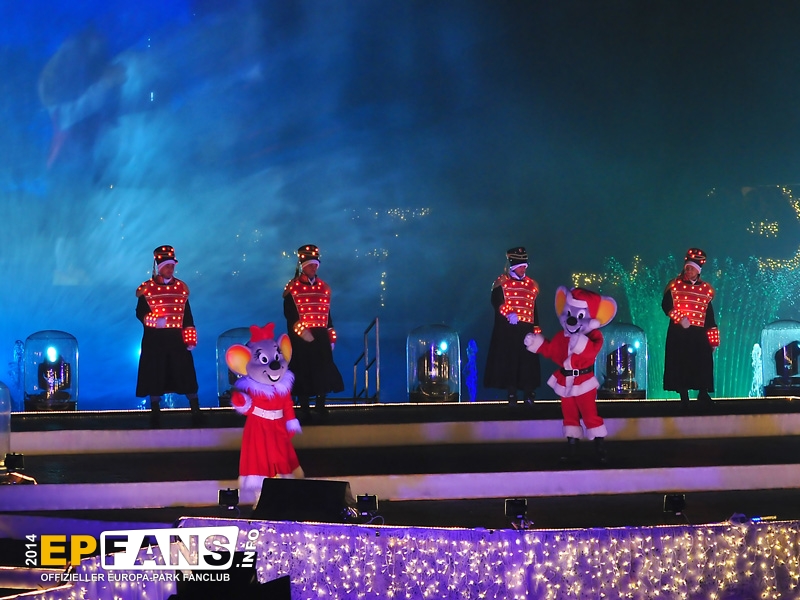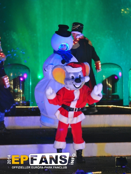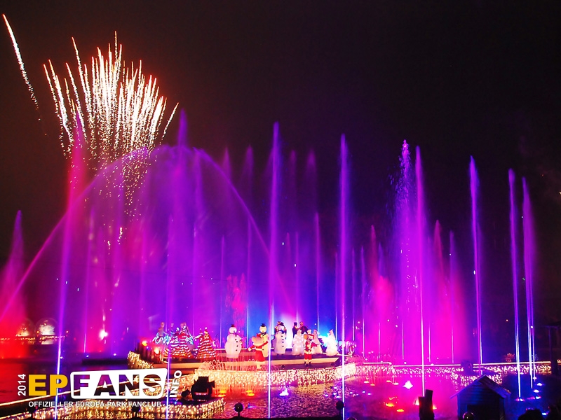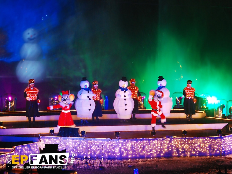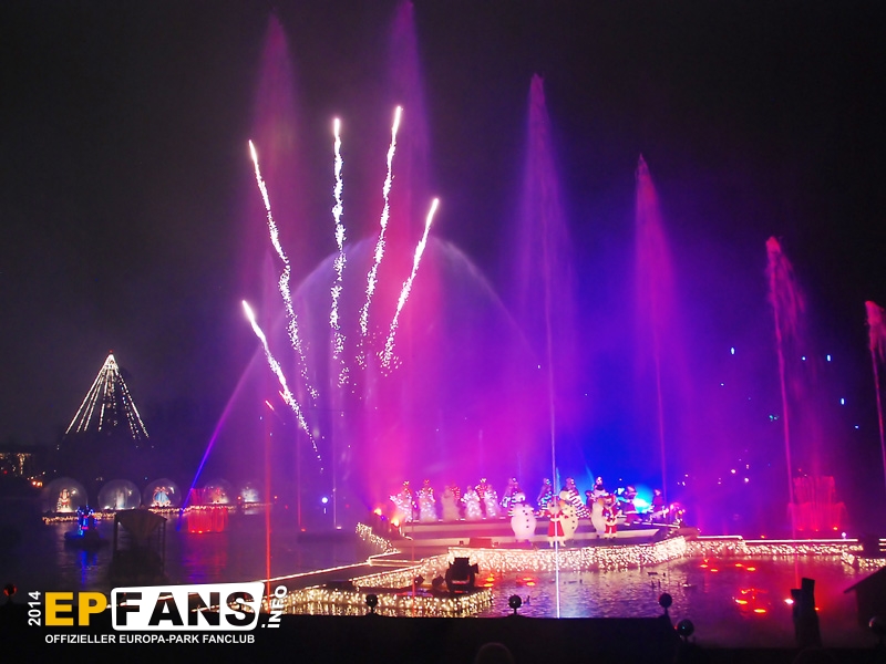 |  |  |  | Luna Magica - Sternensee presented by EnBW 2014Die Euromaus ist ungeduldig und packt ein Geschenkt vom Weihnachtsmann zu früh aus. Die Besucher kann es freuen. Denn im Geschenk sind allerhand Licht,- Wasser-, und Feuereffekte.Doch der Weihnachtsmann bemerkt das Treiben der Euromaus und kommt höchstpersönlich auf seinem Schlitten eingeschwebt. Tausende Lichter auf der Bühne und rund um den See sowie ein kleines Abschlussfeuerwerklassen lassen die Besucher in ein funkelndes Weihnachtsmärchen eintauchen. Die Darsteller sind entweder "live" auf der Bühne, oder werden auf den speziellen Wasser-Fontainenvorgang projiziert. Die Show dauert ca. 15 Minuten und wird allabendlich ab 18.00 Uhr auf der hierfür errichteten Seebühne vor dem Seerestaurant aufgeführt. Beim Zugang zum See verteilen Mitarbeiter spezielle Effektbrillen, die jeden Lichtpunkt in einen Stern bzw. eine Schneeflocke verwandeln. Die Show ist inhaltlich angelehnt an die Aufführungen der vergangenen Jahre, wurde jedoch 2014 neu konzipiert und durch die Installation einiger Wasserfontainen der Firma Aquatique erheblich aufgewertet. Seit 2014 tritt EnBW als Sponsor der Show auf, weshalb der Name auch im Showtitel enthalten ist.