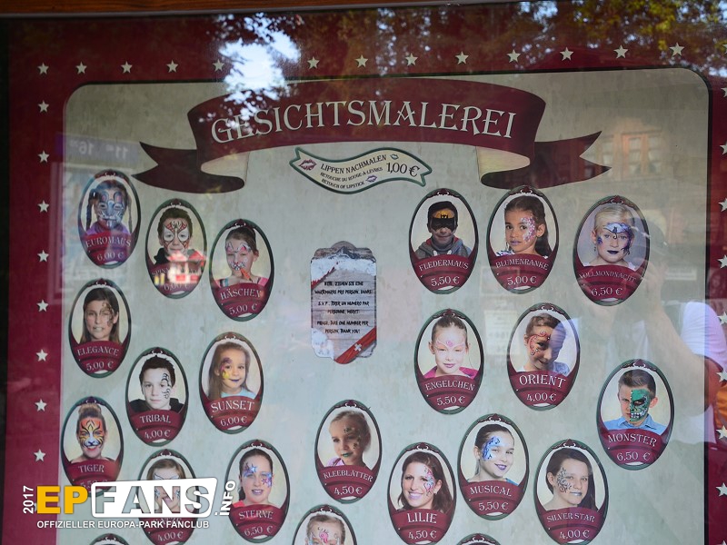- Profesionelle Visagisten schminken und verzaubern hier die Kleinsten mit Ihrem Können. Gegen eine geringe Gebühr kannst du aus einer Vielzahl von Motiven wählen oder auch ein Airbrush-Tatoo erstellen lassen.