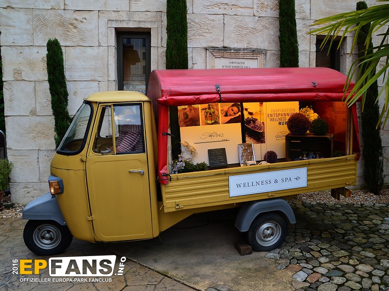Wellness & Spa Hotel ColosseoDas Wellness & Spa Angebot ist für Hotelgäste und Tagesbesucher. Es ist sehr vielseitig. Mehr darüber ist unter http://www.europapark.de/de/wellness-colosseo zu erfahren.Öffnungszeiten: Mo - Fr: 09:00 - 21:00 Uhr, Sa - So: 10:00 - 21:00 Uhr