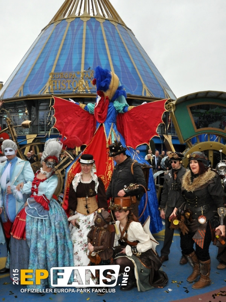 Die neuen Paradewagen im Steampunk-Look werden von 100 Akteuren in neuen Kostümen, mit eigens komponierter Musik von Hendrik Schwarzer und zahlreichen Effekten wie Seifenblasen und Konfetti-Regen begleitet. Drei magische Show-Stopps sind auf der neuen Parade-Stecke vorgesehen. (Rote Straße, Englischer Themenbereich & Aktionsfläche vor dem Historama). Die Parade wird ab diesem Jahr täglich um 14.30 Uhr und somit eine halbe Stunde später als gewöhnlich stattfinden.