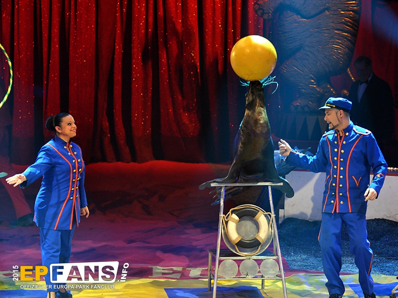 | Bitte beachten: Bild- und Tonaufnahmen durch die Zuschauer sind im Winterzirkus nicht erlaubt! Wir danken dem Europa-Park für die freundliche Gestattung der Aufnahmen und deren Veröffentlichung auf unserer Seite. |