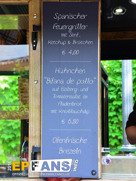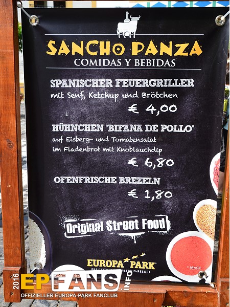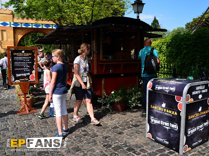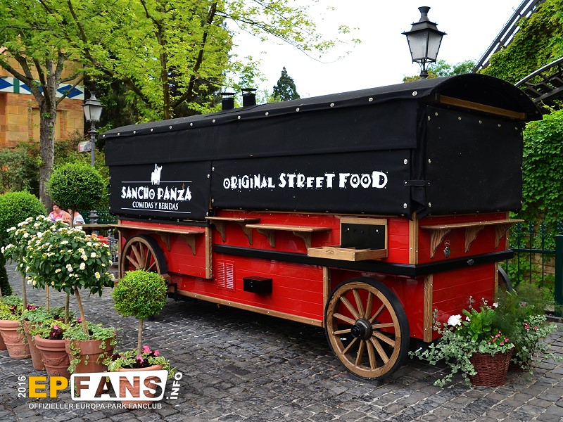 Sancho Panza Spanish StreetfoodSpanien - Das Angebot des Imbiss reicht von kalten Getränken bis zu spanische Feuergriller. Er ist nicht immer geöffnet!Zum Saisonstart 2016 wurde das Imbiss-Zelt durch einen Verkaufswagen ersetzt. Seit dieser Aufwertung trägt der Imbiss den Namen "Sancho Panza Spanish Streetfood".