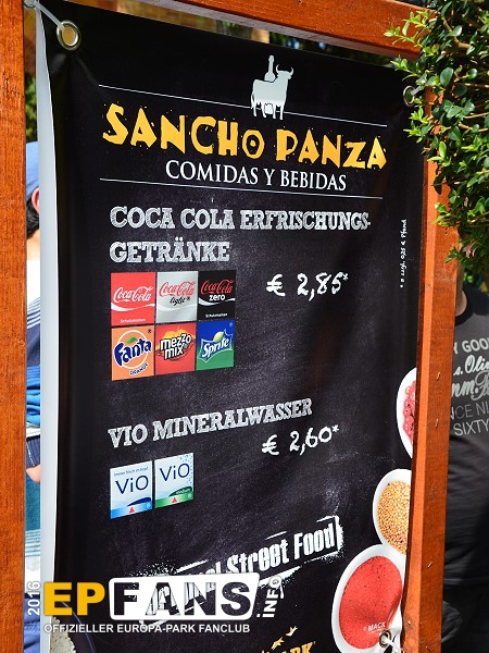 |  |  |  | Sancho Panza Spanish StreetfoodSpanien - Das Angebot des Imbiss reicht von kalten Getränken bis zu spanische Feuergriller. Er ist nicht immer geöffnet!Zum Saisonstart 2016 wurde das Imbiss-Zelt durch einen Verkaufswagen ersetzt. Seit dieser Aufwertung trägt der Imbiss den Namen "Sancho Panza Spanish Streetfood".