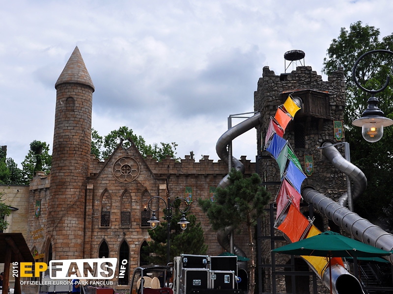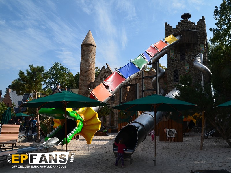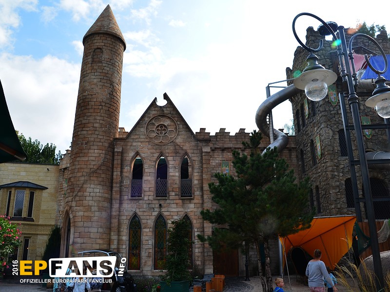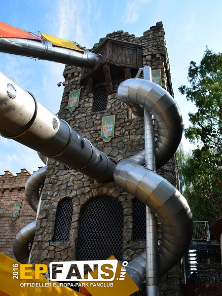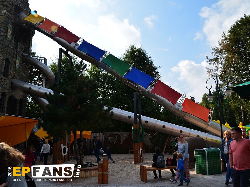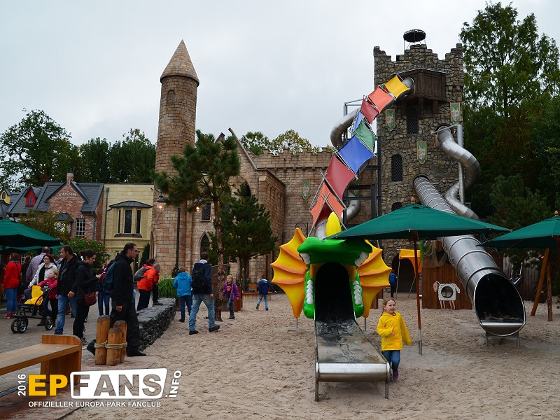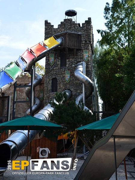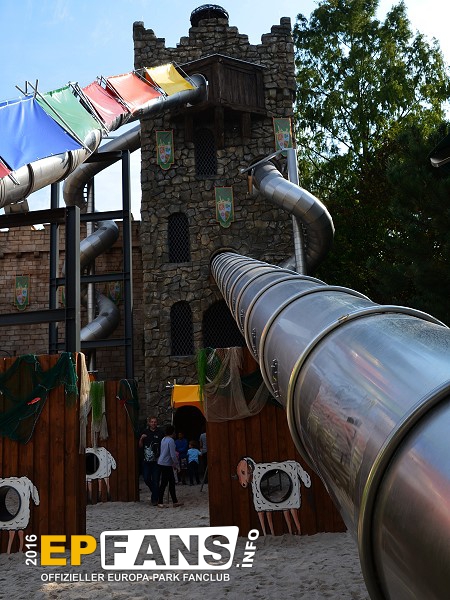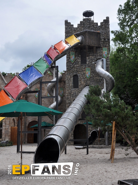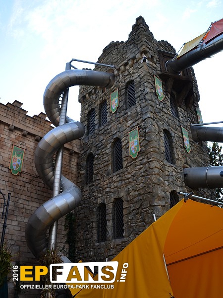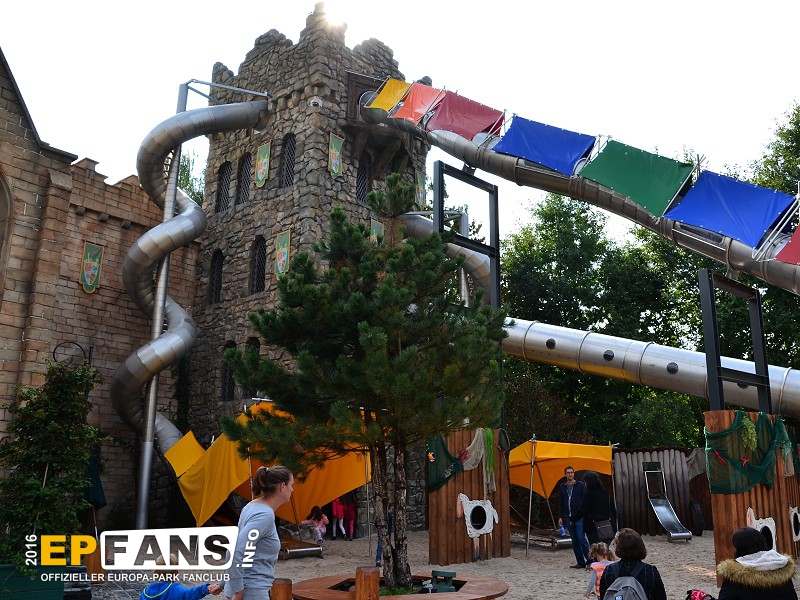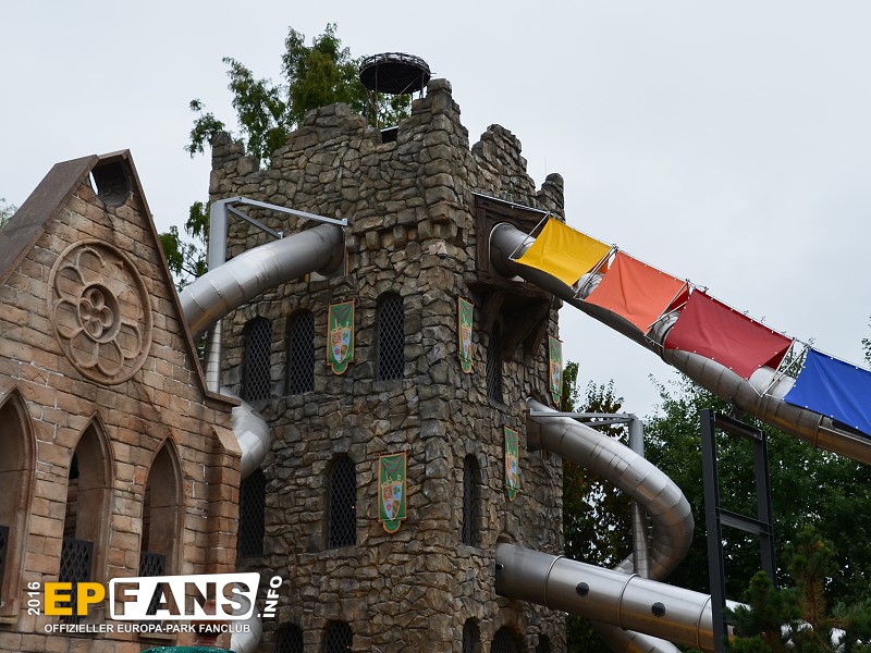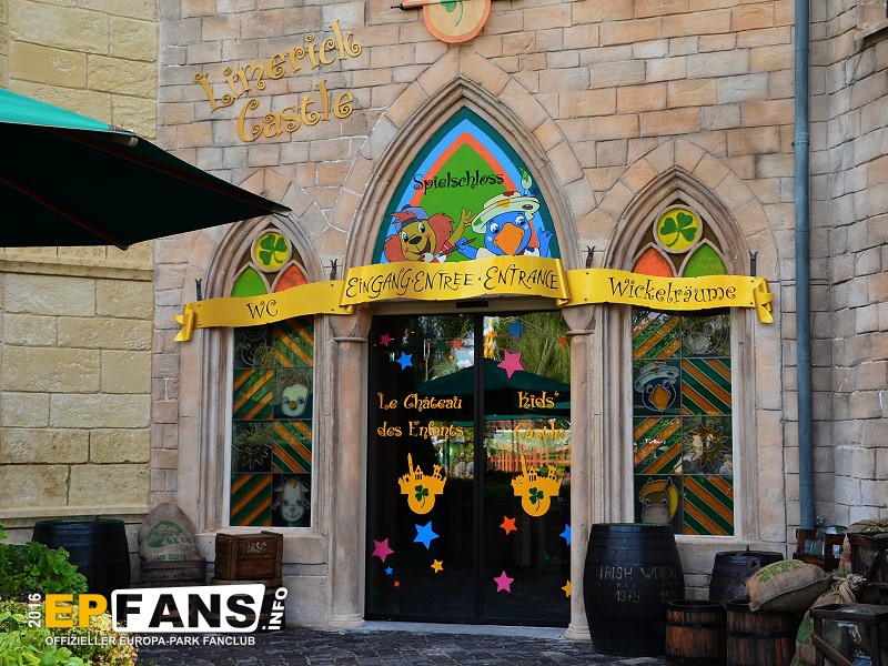 Limerick Castle (Außenbereich)Irland - Im Außenbereich des Limerick Castle sind zahlreiche Rutschen. Dabei handelt es sich um wiederverwertete Rutschenelemente vom Riesen-Rutschen-Labyrinth aus dem vorherigen Themenbereich Welt der Kinder. Außerdem wurde die Leuchtturmrutsche aus der ehemaligen Welt der Kinder hier wieder aufgestellt.