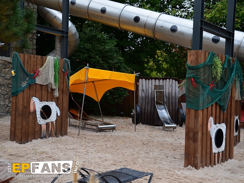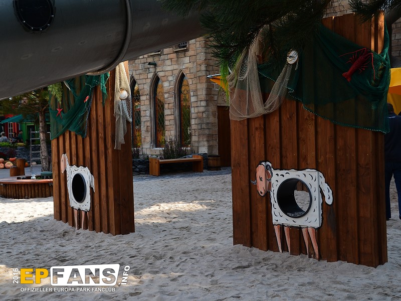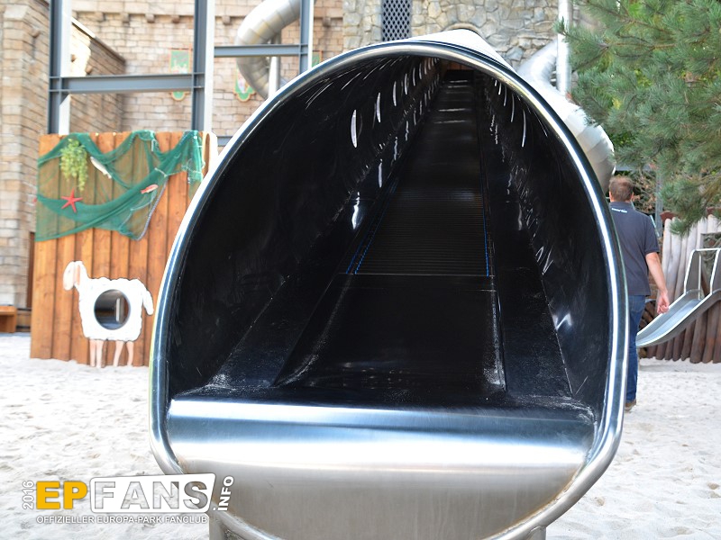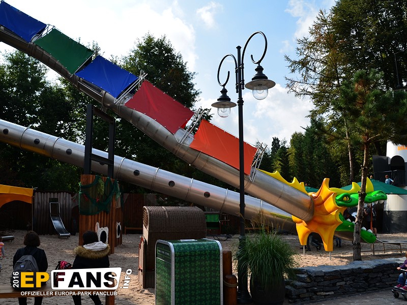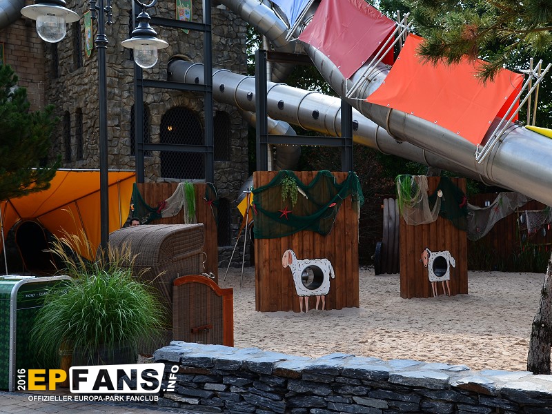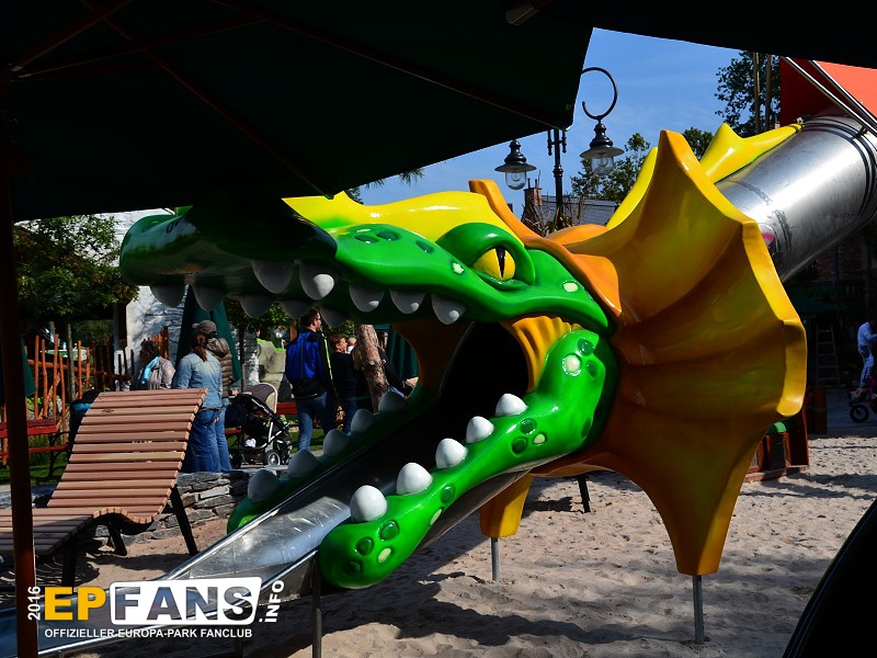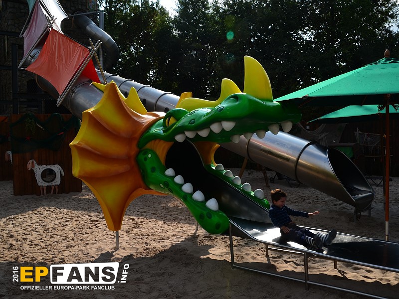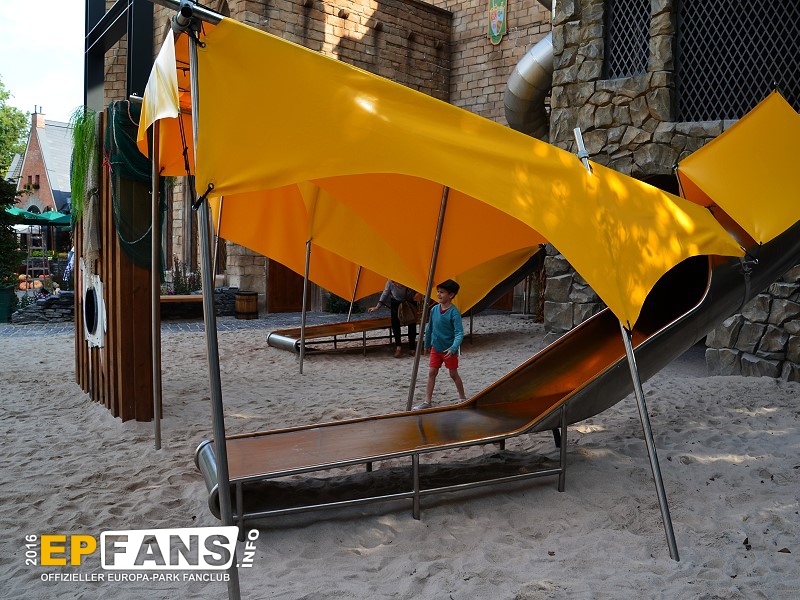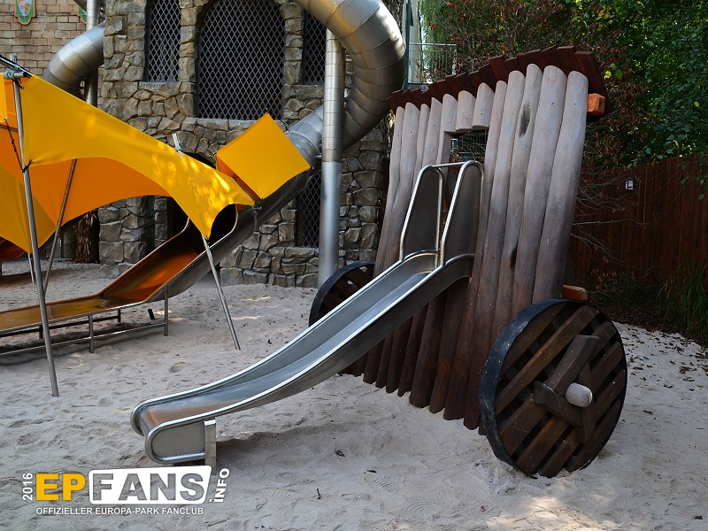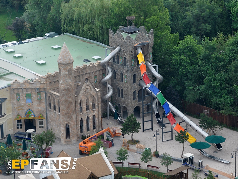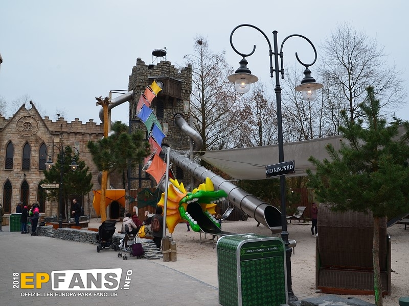 Limerick Castle (Außenbereich)Irland - Im Außenbereich des Limerick Castle sind zahlreiche Rutschen. Dabei handelt es sich um wiederverwertete Rutschenelemente vom Riesen-Rutschen-Labyrinth aus dem vorherigen Themenbereich Welt der Kinder. Außerdem wurde die Leuchtturmrutsche aus der ehemaligen Welt der Kinder hier wieder aufgestellt.