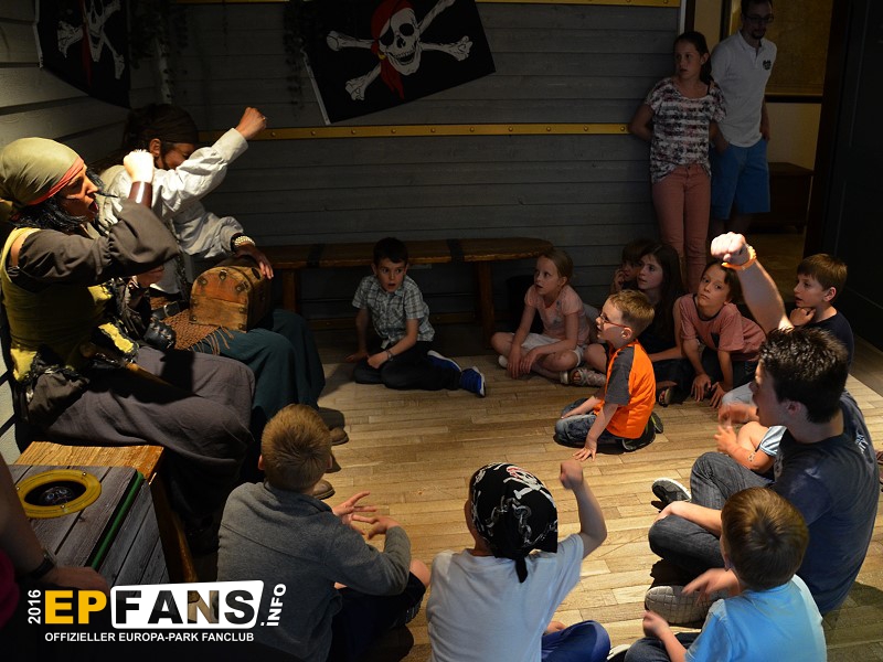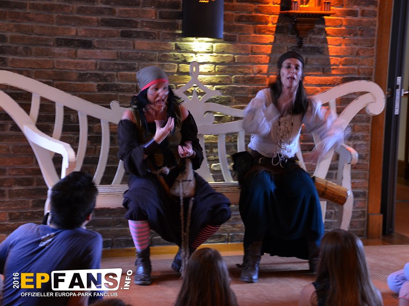 Im Sommer 2016 waren beispielsweise Donner Dörte und Lispel Lisbet von der Meute im Hotel unterwegs. Donner Dörte rekrutierte bereits beim Frühstück morgens die kleinen Piraten, die sie abends bei der Schatzsuche brauchte. Gekennzeichnet wurden die kleinen Piraten mit einem Stempel. Die Schatzsuche dauert ca. 60 Minuten.