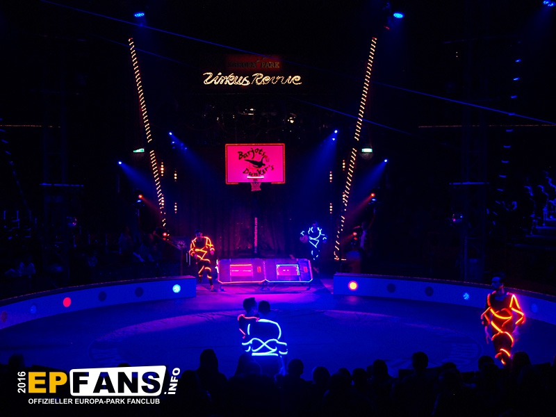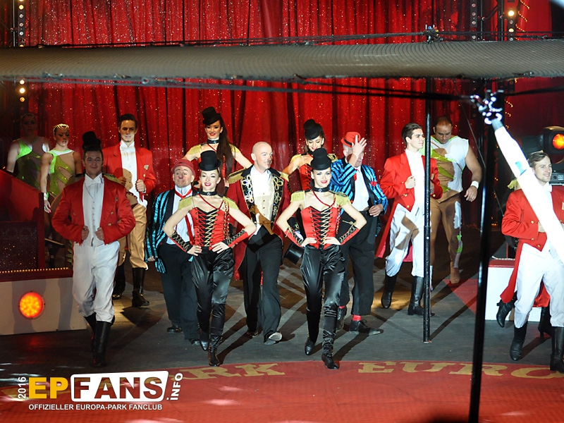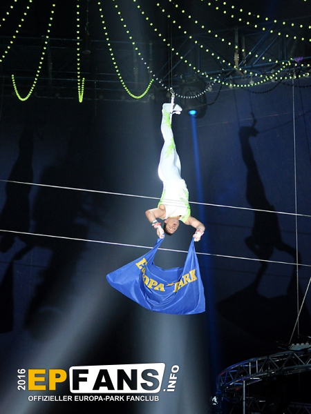 Zirkus Revue 2016/2017 Seit einigen Jahren zeigt der Europa-Park in der Wintersaion in einem Zirkuszelt auf dem Festival Gelände eine Zirkus-Revue mit zahlreichen international bekannten Artisten. Das beheizte Zelt stammt vom Circus Fliegenpilz. Es hat einen Durchmesser von 44 m und fasst 2200 Besucher in Schalensitzen.