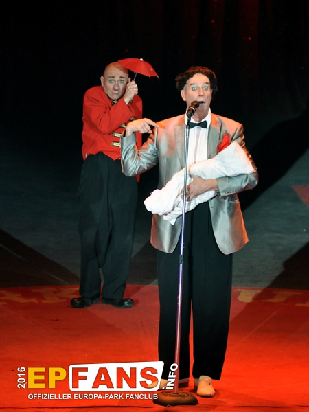 | Die beiden aus dem letzten Jahr bekannten Clowns unterhalten mit verschiedenen Auftritten während der Revue. Homepage(ein täglicher Auftritt in Rust in der Sommersaison ist geplant!) |