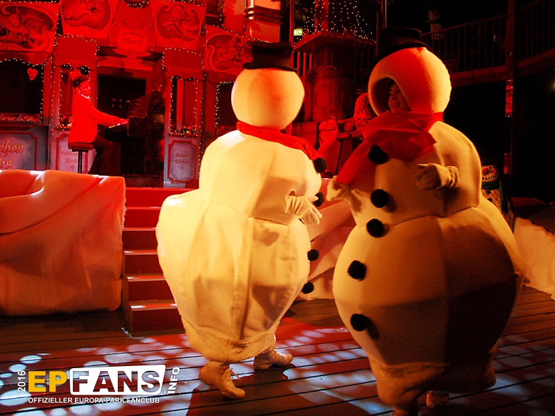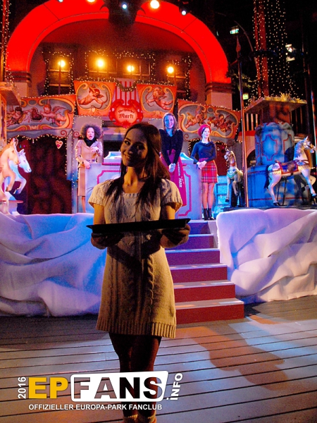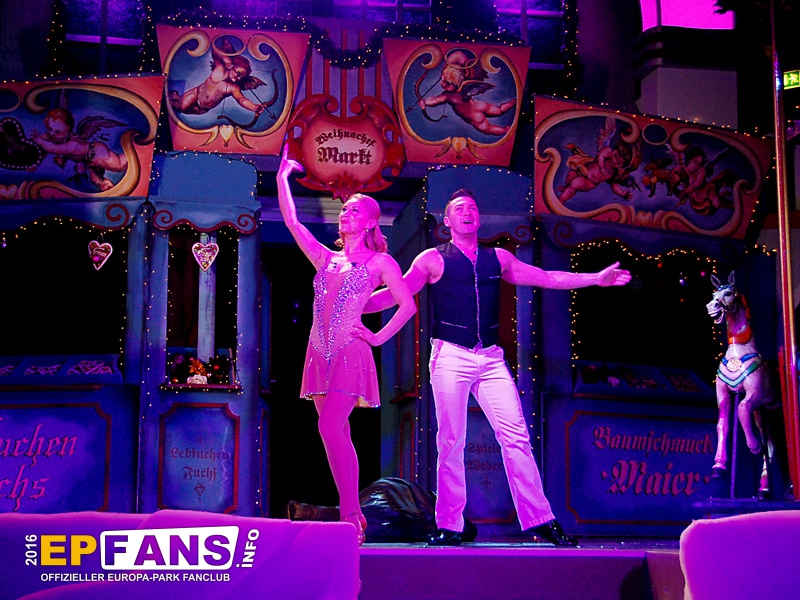 Ein musikalischer Weihnachtsmarkt - Globe - Winter 2016/2017Die Show im Globe-Theater lädt die Zuschauer auch 2016/2017 wieder auf einen altertümlichen Weihnachtsmarkt ein. Die Show ist inhaltlich angelehnt an Darbietungen der vergangenen Jahre, wurde jedoch komplett neu überarbeitet und mit neuen Liedern bestückt.Es werden Non-Stop mehr oder auch weniger bekannte Weihnachtslieder vorgetragen. Durch die Abwechslung zwischen besinnlichen, ruhigen Stücken und Liedern mit Pep und Humor wird eine kurzweilige Unterhaltung garantiert. Der Auftritt eines "Quick-Chance-Duos" lässt die Besucher staunen, wie schnell man sich umziehen kann. Körperbeherrschung und Ästhetik präsentiert eine Artistin an ihren Tüchern in schwindelerregenden Höhen.