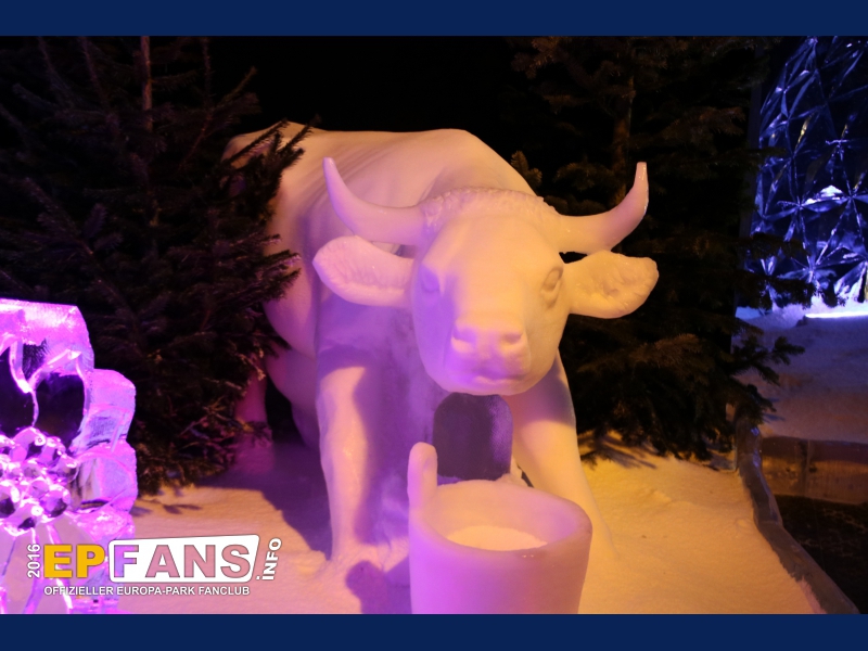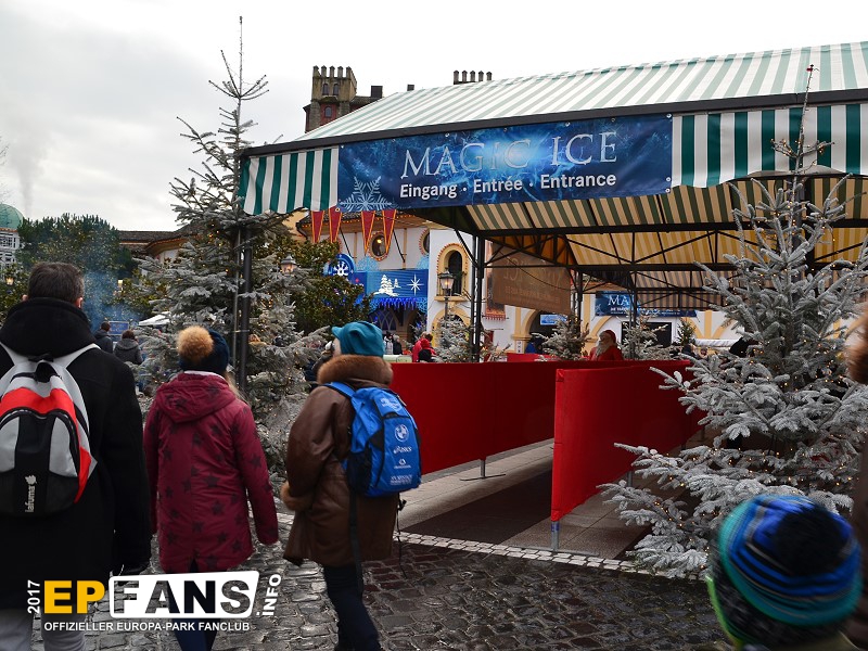 Spanien - In der spanischen Arena wurde in der Wintersaison 2016/2017 zum ersten Mal diese Halle errichtet. Darin befanden sich 30 Eis-Skulpturen. Sie zeigten Motive aus dem Europa-Park u.a. war Franz Mack aus Eis zu sehen. Ein 50-köpfiges Team aus Designern, Stackern und Cavern hatte 150 Tonnen Eis von einer Spezialfirma aus Belgien und 150 Tonnen Schnee bearbeitet. Dabei entstand eine traumhafte Märchenwelt aus Eis. Das Eis aus Belgien zeichnete sich besonders durch eine kristallklar bläuliche Färbung aus.