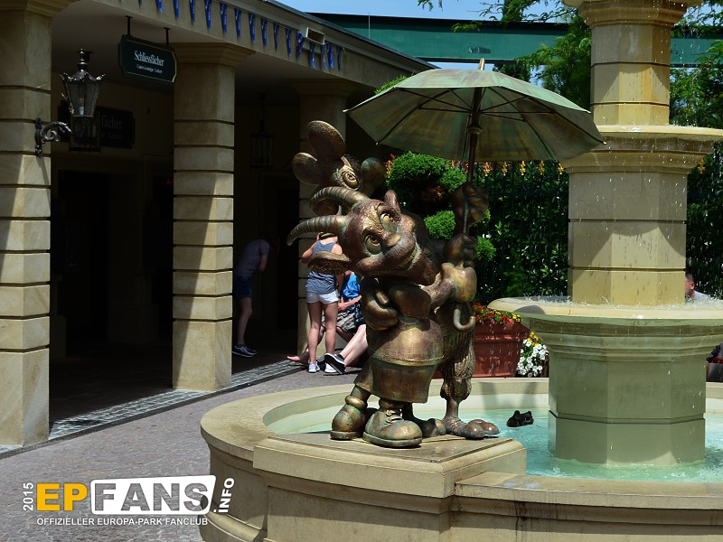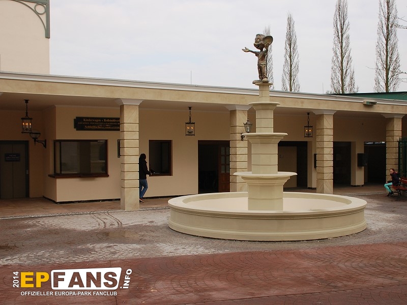 Vor den Schließfächern gab es von der Saison 2014 bis zur Saison 2015 auch noch einen Brunnen mit Euromaus, Euromausi, Bökli, Louis und Eurofant. Der Brunnen wurde nach nur 2 Jahren bereits wieder entfernt, weil an dieser Stelle der Zugang zum Voletarium entstand. Die Figuren findet man jetzt in den Themenbereichen Schweiz, Luxemburg und Abenteuerland.