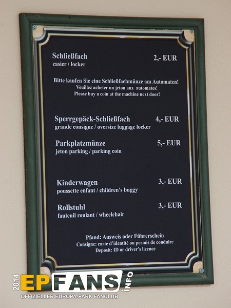 Deutschland - Die Schließfächer befinden sich hinter dem Haupteingang auf der linken Seite. Sie wurden zum Saisonstart 2014 neugebaut. Seitdem gibt es rund 600 Schließfächer, die allerdings nach einmaliger Nutzung nicht wieder verschließbar sind. Für jede Schließung muss bezahlt werden. Diese Regelung gab es bei den vorherigen Schließfächern bis zur Wintersaison 2013/2014 nicht. Für diese bekam man früher einen Schlüssel mit dem man so oft wie man wollte ans Schließfach kam.
