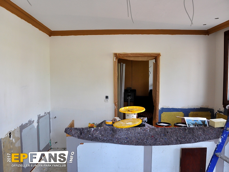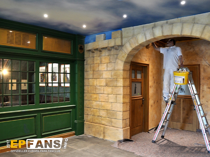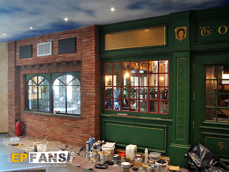 Überhaupt ist der ganze (bislang recht kahle) Bereich zwischen Pub und Spielbereich nun optisch dem restlichen Gebäude angepasst.