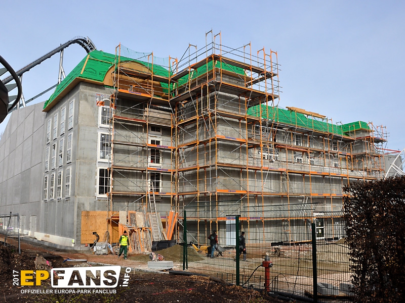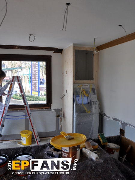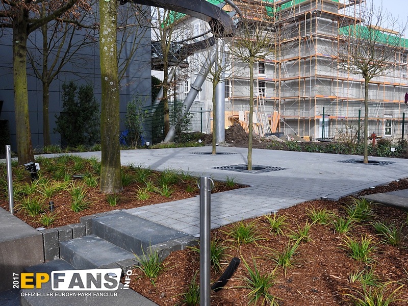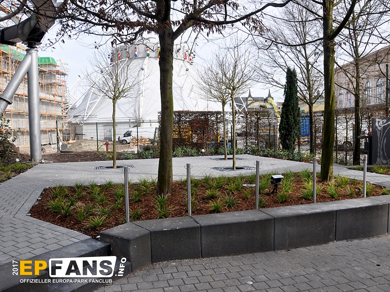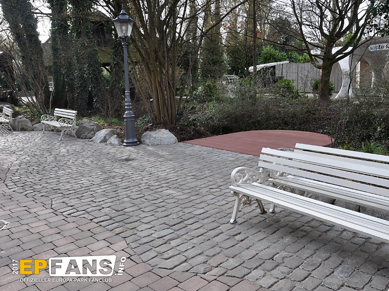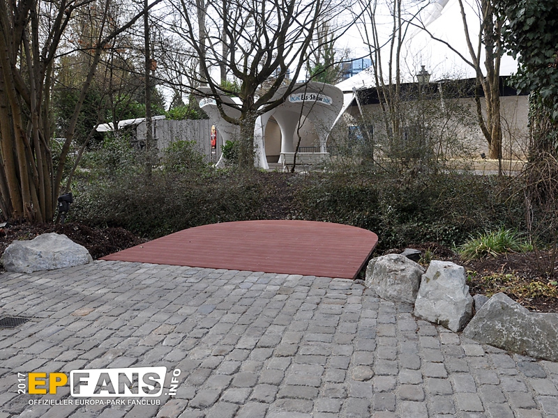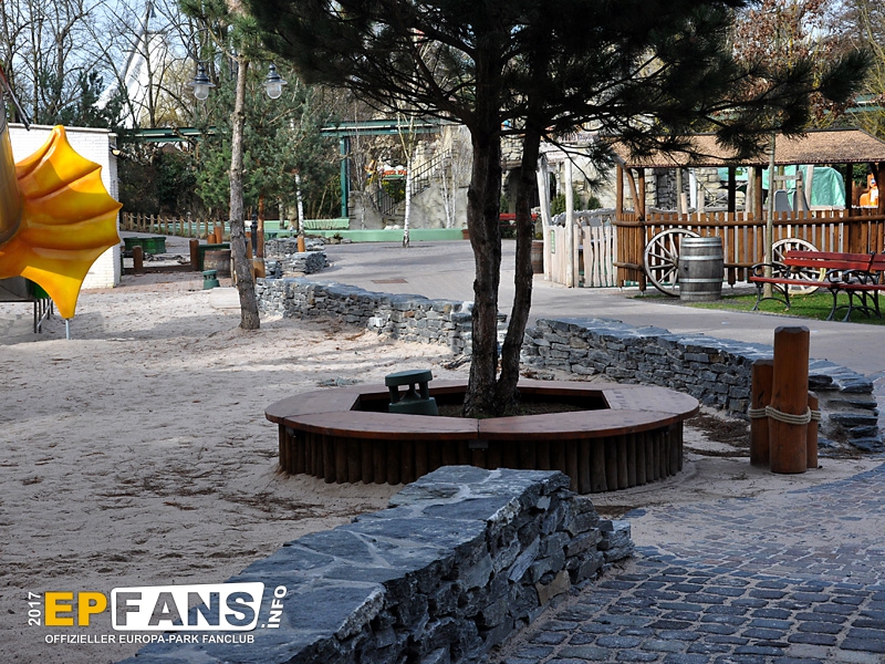 Besorgte Eltern können wir an dieser Stelle beruhigen: Die Halbinsel erhält noch vor Saisonstart ein Geländer! Übrigens dürfte diese Plattform treuen EP-Fans bekannt vorkommen: Bis zum Umbau von Irland war sie (zusammen mit anderen) im Bereich der "Welt der Kinder" über der Elz verbaut.
