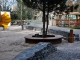 Im Freien ist nun der Spielbereich mit dem Sand durch eine Mauer vom Weg getrennt. Das dürfte den Mitarbeitern die eine oder andere Überstunde ersparen, die sie bisher mit Fegen beschäftigt waren! ;-)