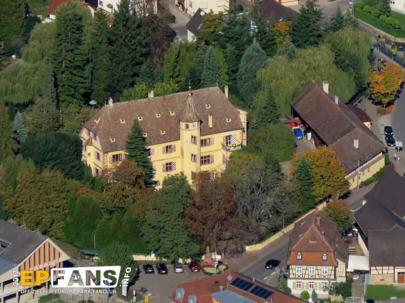 Auch auf den Fotos zu erkennen ist auch das Ruster Rathaus, welches aktuell kernsaniert wird. Und zum krönenden Abschluss: Wir schauen auf die letzten Luftbilder von Eurosat vor dem Umbau.