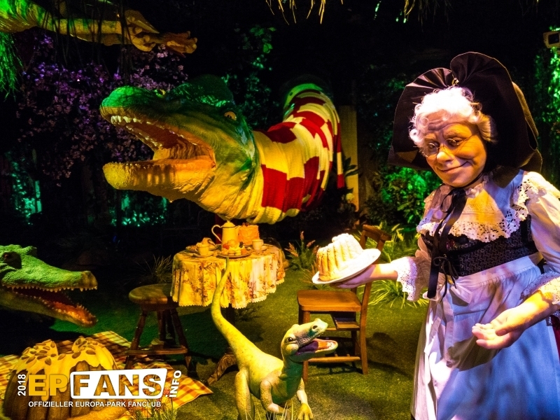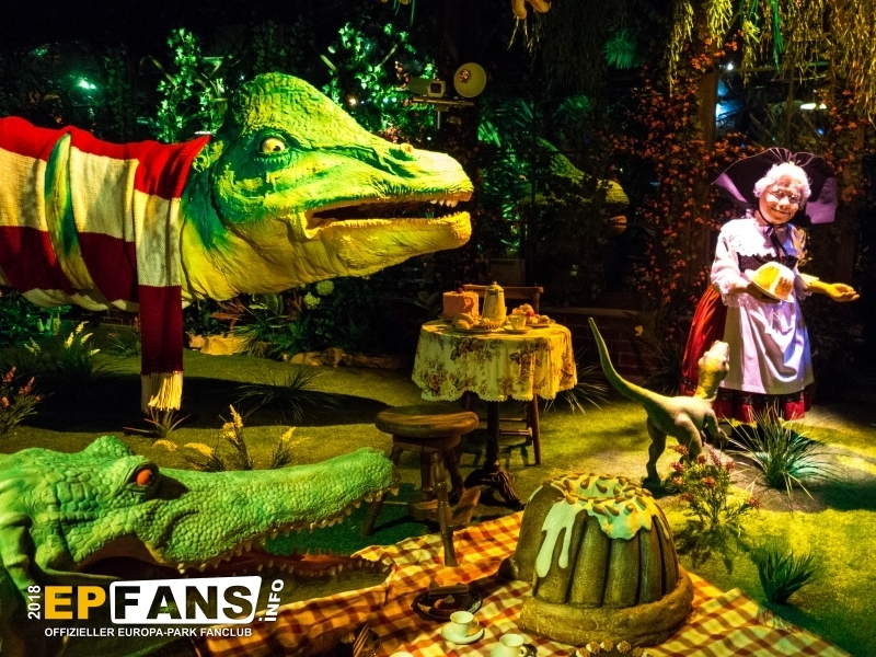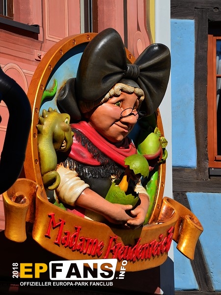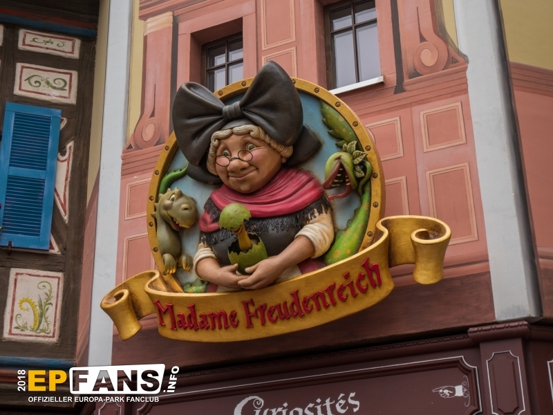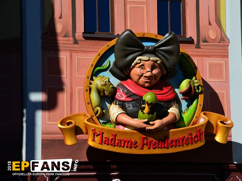 Madame Freudenreich Curiosités ersetzt die vorherige Attraktion "Universum der Energie". Viele der Dinosaurier aus dieser Attraktion sind geblieben, aber es sind auch einige neu hinzu gekommen. Man fährt in einer Gondel sitzend gemütlich an vielen bunten, hellen und lustigen Szenen mit Dinosauriern vorbei. Die Strecke verläuft u.a. durch einen Garten, durch ein Backhaus und an einer Geburtstagsparty vorbei. Passend zu den Szenen läuft Musik. Der Soundtrack kann im Park in verschiedenen Shops käuflich erworben werden.