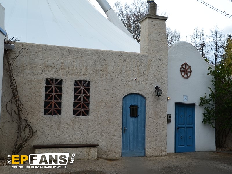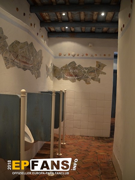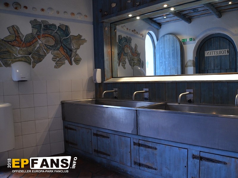 Toiletten EisstadionGriechenland - Die Toiletten befinden sich links und rechts vom Eingang zum Eistadion gegenüber der Attraktion Die Schlacht um Hydros. Es gibt rechts von der Herrentoilette auch noch spezielle Toiletten für Menschen mit Behinderung.