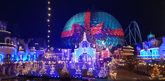 Auf einer Skala von 1- 10 sollte Michael Mack bewerten, wie herausfordernd das Jahr für ihn war. Er antwortete: „Auf Stufe 12.“ Hieran merkt man, dass das Jahr mit seinen vielen geplanten und ungeplanten Projekten es in sich hatte. Gerade der Brand bei dem ein ganzer Themenbereich und eine beliebte Attraktion komplett zerstört wurden, hat die Familie Mack viel Kraft gekostet. Auch die anderen Projekte wie Rulantica, das Hotel „Krønasår“, Euro-Sat CanCan Coaster, Jim Knopf, Madame Freudenreich Curiosités, „Eurosat Coastiality“, und die vielen anderen kleinen Projekte und Verschönerungen für die zahlreichen Besucher des Parks, waren anstrengend. Aber, wie Thomas Mack betonte, macht es auch riesigen Spaß und motiviert ungeheuer, wenn Projekte entstehen und man zusehen kann, was für tolle Ergebnisse dann dabei herauskommen. Dies zu sehen entlohnt dann immer für die viele Arbeit. Auch in dieser Wintersaison gibt es wieder eine ganze Menge zu entdecken. Wir versuchen mit diesem Bericht und stimmungsvollen Bildern, euch nun Lust auf diese 18. Winteröffnung zu machen. Kommt mit uns auf einen Spaziergang durch die Winterwelt. ![]() Der Park hat sich in diesem Jahr wieder wundervoll herausgeputzt. Wir hatten das Gefühl, dass der Park ganz besonders leuchtet. Die Atmosphäre war gemütlich und stimmte bereits auf eine schöne Vorweihnachtszeit ein. 3.000 verschneite Tannenbäume, 10.000 Christbaumkugeln und Tausende von Lichtern entführen in eine Welt, die Erholung vom stressigen Alltag verspricht. Vorne im Park angefangen erwartet uns in der Deutschen Allee, neben dem Weihnachtsmarkt mit einigen neuen Angeboten, in diesem Jahr eine Ausstellung mit legendären Werken von James Rizzi. In der neu gestalteten "Schatzkammer" können die Besucher mehr als 60 Bilder und zahlreiche Holzspielzeuge des amerikanischen Pop Art Künstlers entdecken – darunter viele Unikate, die noch nie in der Öffentlichkeit zu sehen waren. James Rizzi gilt als einer der einflussreichsten Kunstschaffenden der US-Nachkriegsgeschichte. Er liebte Freizeitparks und zeigt in seinen Arbeiten Freude, Lebenslust, Spaß an Unterhaltung und friedliche Menschenmassen in der Metropole New York. Folgt uns weiter durch den Park: Im Schlosspark und drum herum ist der altertümliche Christkindlmarkt zu finden. Hier gibt es Vieles zu entdecken: In zahlreichen Zelten werden alte Berufe wie der des Buchbinders, des Goldschmieds oder des Krippenbauers vorgestellt. Außerdem warten etwa eine Wahrsagerin, ein Lehmbauer und ein Steinmetz auf die Besucher. Bei Einbruch der Dunkelheit sorgen Fackeln und Feuerstellen für einen stimmungsvollen Rahmen. «Snorris funkelnde Wasserwelt» dieses Thema ist auch im Schlosspark anzutreffen. Der quirlige Meeresbewohner und seine Freunde sind in diesem Jahr beim chinesischen Lichterfest zu entdecken. Dieser Bereich sorgt für eine besondere Stimmung. Wir machen uns nun auf den Weg in den französischen Themenbereich, vorbei an Jim Knopf, bei dem es in diesem Winter auch Neues zu entdecken gibt. Aber das müsst ihr selber herausfinden. In Frankreich angekommen erwartet uns eine tolle Lichtstimmung mit vielen glitzernden Lämpchen und blauem Licht, was sehr angenehm ist. Neu ist hier die beeindruckende Multimedia-Show „Miraculeux“ auf der Fassade des „Eurosat – CanCan Coaster“, die ab 17 Uhr alle 30 Minuten zu bestaunen ist. Auch in der Wintersaison darf natürlich eine Fahrt im "Eurosat – CanCan Coaster", "Eurosat – Costiality" oder bei Madame Freudenreich nicht fehlen. Die Fassade erstrahlt, bei diesen Attraktionen, abends in einem anheimelnden Ambiente. Im Magic Cinema 4D begeistert das neue, 12-minütige Filmhighlight „Nachts im Park 4D“ von Mack Animation: Ein magisches Artefakt des „Adventure Club Europe“ (ACE), das Gegenstände zum Leben erwecken kann, sowie das unvorsichtige Verhalten von Ed Euromaus sorgen über Nacht für ordentlich Trubel im Europa-Park. Es beginnt eine wilde Verfolgungsjagd in der Ed und Edda – mit Hilfe des lebendig gewordenen Großvaters – vielen Gefahren und Hindernissen trotzen müssen, um Deutschlands größten Freizeitpark vor dem Untergang zu bewahren.