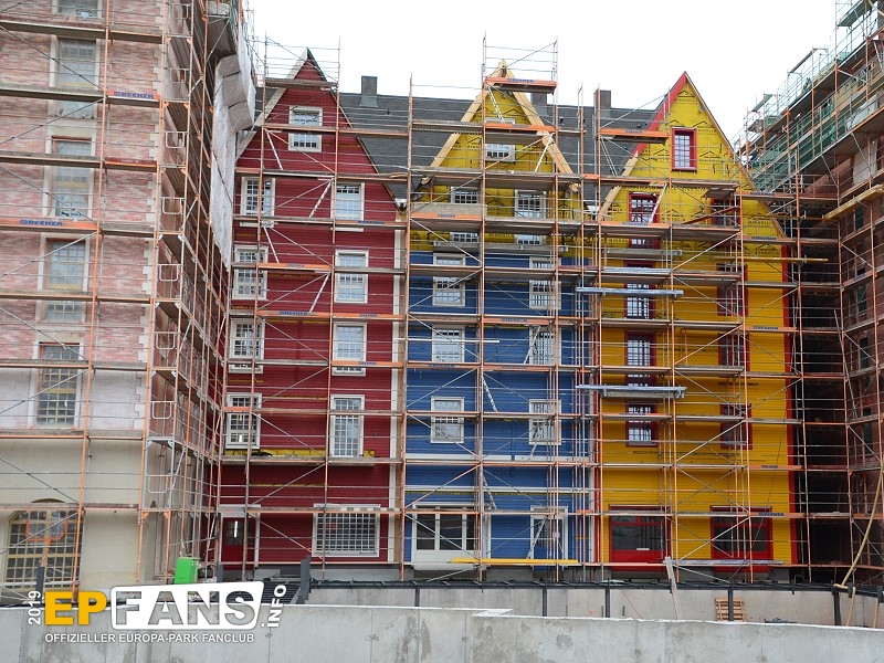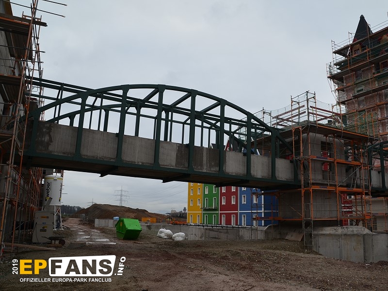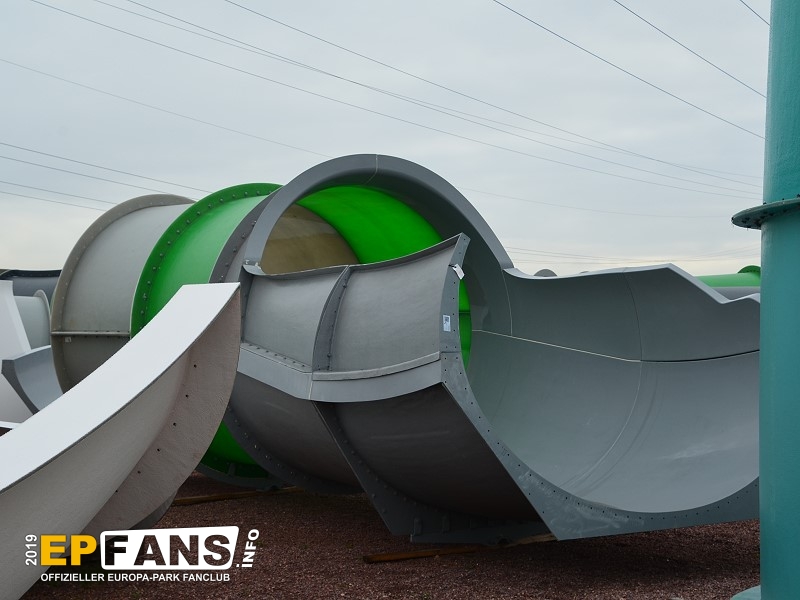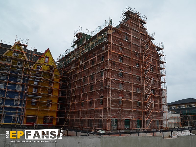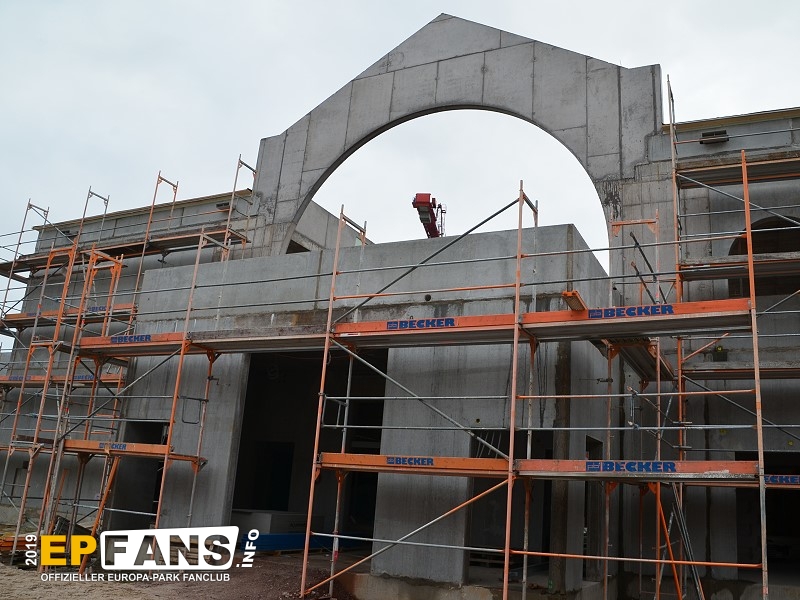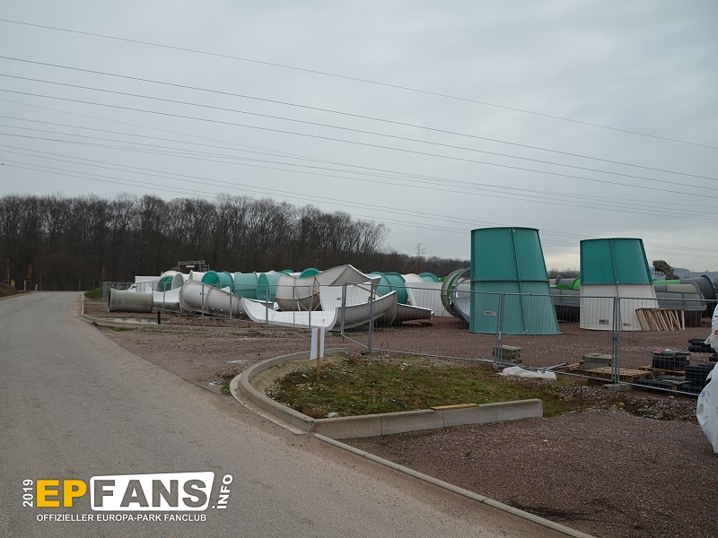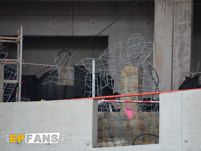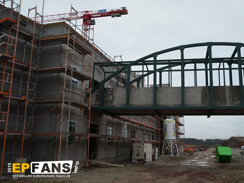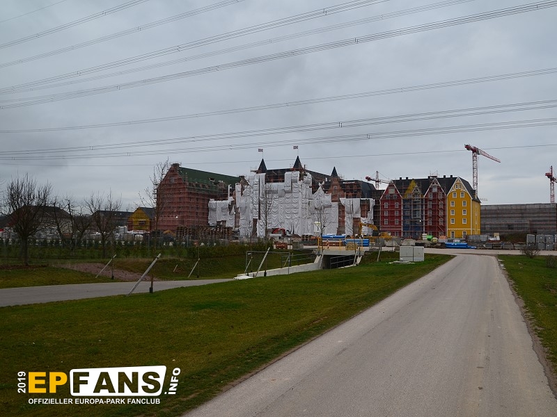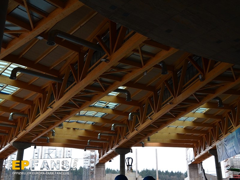 Von der Rutschenlagerfläche liefen wir zum Punkt 1 vor der Rulantica Halle, wo die Fotos 8-12 entstanden. Draußen dominieren noch Baufahrzeuge und Baumaterialien das Bild. Der Bau an den Außenbecken hat noch nicht begonnen. Im Vergleich zum Richtfest sind allerdings mittlerweile die ersten Fensterscheiben bei der Halle eingebaut worden. Wir gingen dann zum Punkt 2. Hier entsteht der Bereich "Skip Strand". Dort wo jetzt noch Baumaschinen stehen ist zukünftig ein Abenteuerpool mit Rutschen und der Möglichkeit zum Toben und Planschen. Die Bilder 13-16 zeigen den Bereich "Skip Strand". Um diesen herum wird ein Teil des Lazy River führen. Auf Bild 17 ist der Rohbau vom Rutschenturm im Bereich "Vinterhal" zu sehen. Dieser Bereich wird ein Gletscherberg sein. Die 8 Cabañas entstehen ganz links auf dem Bild 18. Den zweiten Rutschenturm mit den ersten, montierten Rutschenelementen sieht man auf den Bildern 19-20. Die nächste Station der Tour (Punkt 3) war nur wenige Meter weiter vor dem Wellenbecken (Bilder 21-22). Die Bilder 23-26 zeigen die beiden Rutschentürme nochmals aus einer etwas anderen Perspektive. Der Bereich "Trolldal" liegt etwas höher als das Wellenbecken und ist auf dem Foto 27 zu sehen. Hier entstehen bereits die ersten Felsen (Bild 28-29). Das Bild 30 zeigt den Bereich, wo ein Pizza und Pasta Restaurant entstehen wird und auf Bild 31 sieht man den Blick in Richtung "Skip Strand". Als nächstes liefen wir über eine Rampe in das Kellergeschoss unter der Schwimmhalle. Hier sahen wir bereits Unmengen von Kabelpritschen und Rohren. Hut ab vor demjenigen, der hier den Überblick behält. Im Keller befindet sich auch die Filteranlage. Die Bilder 32 und 33 zeigen nur einen ganz kleinen Teil der riesigen Anlage, die wir bestaunen durften. Vom Keller ging es wieder hinauf zum Punkt 4 der Führung. Dort wird sich zukünftig das Pizza und Pasta Restaurant befinden. Es soll ein Front-Cooking Konzept ähnlich wie bei Vapiano geben. Die Bilder 34-35 zeigen den derzeitigen Zustand. Uns wurde ein bisschen zur Gestaltung verraten, aber das wollen wir an dieser Stelle erst einmal für uns behalten, damit es auch noch ein paar Überraschungen für euch gibt. Unser Weg führte noch einmal in die Schwimmhalle zum Punkt 5. Diesmal standen wir auf der anderen Seite des Wellenbeckens (Bild 36). Auf den Bildern 37 und 38 sieht man den Bereich "Lumåfals" und den dortigen Bereich vom Lazy River, der sich hinter dem Wellenbecken befindet. Ein Blick an die Decke zeigt das geschlossene Dach der Halle und einige Markierungen für den weiteren Bau im Bereich "Lumåfals" (Bild 39 und 40). Einer der Zugänge zur Wasserwelt von den Umkleiden aus ist auf Bild 41 zu sehen. Das Pizza und Pasta Restaurant wird sich hinter den Planen auf Bild 42 befinden. Die letzten beiden Fotos vom Punkt 5 aus zeigen einmal den Blick zum Bereich "Vinterhal" (Bild 43) und einmal in Richtung der 8 Cabañas (Bild 44). Die letzte Station im Gebäude war der Punkt 6. Hier befindet sich das Eingangsgebäude der Wasserwelt, wo alle Badegäste ankommen. Unten gehen die Tagesgäste hinein und oben die Hotelgäste vom Erlebnishotel Krønåsar. Das Gebäude soll wie eine Fischhalle gestaltet werden (Bilder 45-47). Die letzte Station der Führung war nochmals außen (Punkt 7). Wir liefen durch die zukünftige Eingangstür der Wasserwelt und hatten nochmals einen wunderschönen Blick auf das benachbarte Hotel (Bilder 48-52). Die Bilder 53 und 54 zeigen den Eingang zur Wasserwelt und die Bilder 55-57 die Brückenverbindung zwischen Hotel und Wasserwelt. Die Dimension der Baustelle Wasserwelt ist beeindruckend. Wir sind sehr gespannt, wie alles mit der vollständigen Thematisierung wirkt. Wir bedanken uns beim Europa-Park insbesondere bei Herrn Noel Ebhart und Herrn Christof Zimmermann, dass uns die Baustellenführung ermöglicht wurde und für die Freigabe der Fotos zur Veröffentlichung. Die letzten beiden Fotos (58 und 59) entstanden auf dem Rückweg von der Baustelle zum Park und zeigen das Erlebnishotel Krønåsar von vorne. Für den Bericht über die Baustellentour von epfans.ch bitte hier klicken.