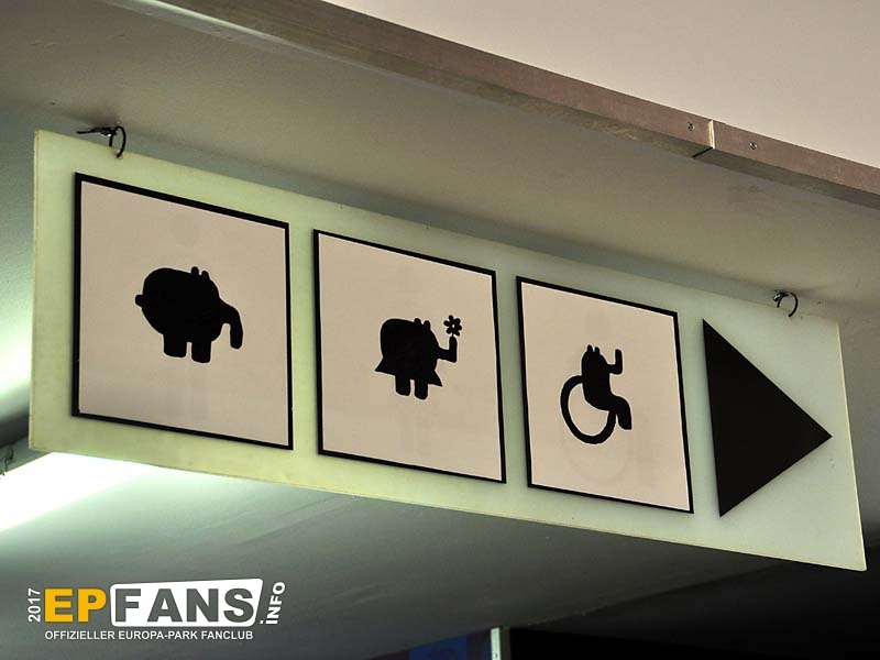 Bei der Kunstausstellung "OTTOs Welt" in der Wintersaison 2017/2018 wurde das Hinweisschild mit Ottifanten überklebt.