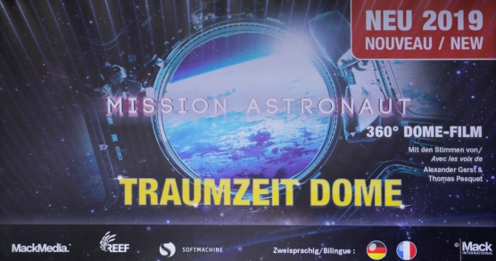 Ein Blick ins Jetzt: Zur heutigen Pressekonferenz waren dann auch zwei Fachleute zum Thema Raumfahrt anwesend. Dr. Bruno Stanek, der für das Schweizer Fernsehen die Mondlandung moderierte und Dr. Ernst Messerschmidt, der 1985 im All war. Beide erzählten mit glühender Begeisterung über die Vergangenheit, Gegenwart und v.a. die Zukunft der Raumfahrt mit den Zielen Mond und Mars und wie zerbrechlich unser blauer Planet ist. Im Traumzeitdome konnten wir dann später selbst die beeindruckenden Aufnahmen aus der ISS heraus bewundern. Kein Vergleich zu den Videoaufnahmen von 1985! Alexander Gerst erklärt hier die „Mission Astronaut“, die in der 360°-Kuppel zu einem echten Erlebnis wird.