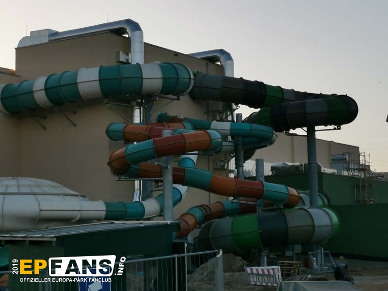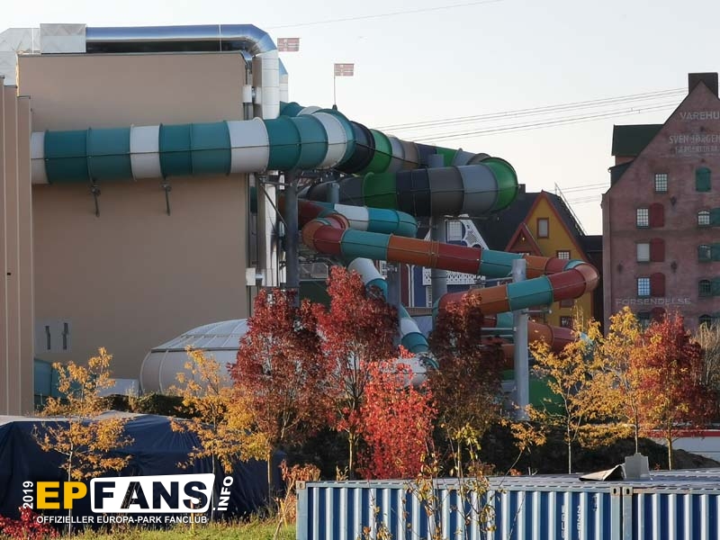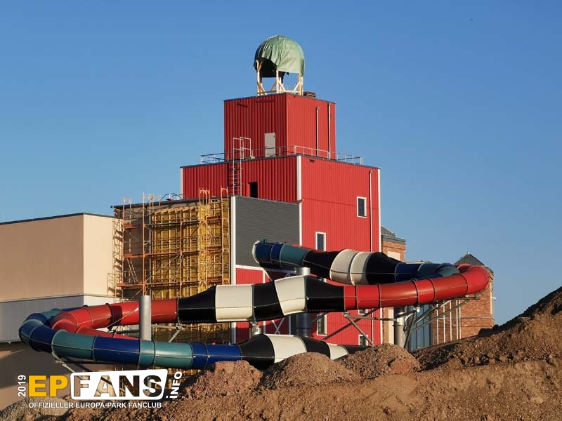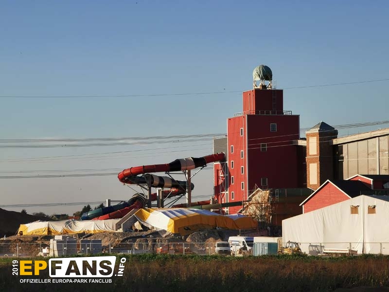 - Sämtliche (außen liegende) Rutschenelemente sind montiert. - Die Bauarbeiten im Außenbereich finden witterungsgeschützt unter einem Zelt statt. - Hinter der Glasfassade ist eine Original-Schiff zu erkennen - Es finden noch zahlreiche Erdarbeiten rund um das Gelände statt. - Die Parkplätze sind z.T. überdacht und mit einer Photovoltaik-Anlage bestückt. - Die Parkplätze am süd-östlichen Gelände sind gerade in der Entstehung - Der 34 Meter hohe Rutschenturm wird laut Artikel der Badischen Zeitung auch als Standort für Mobilfunkantennen genutzt. - Rund um das Hotel Krønasår waren die Landschaftsgärter weiter fleißig und haben u.a. auch einen Rulantica-Brunnen errichtet. Zudem darf nicht vergessen werden, auf das mittlerweile erschienene Buch zu verweisen! Wer sich auf die Welt rund um Rulantica bereits einstimmen möchte, kann ab sofort im Buchhandel oder direkt in den Europa-Park-Shops (inkl. Online-Shop) den 1. Band der Romanreihe bekommen: